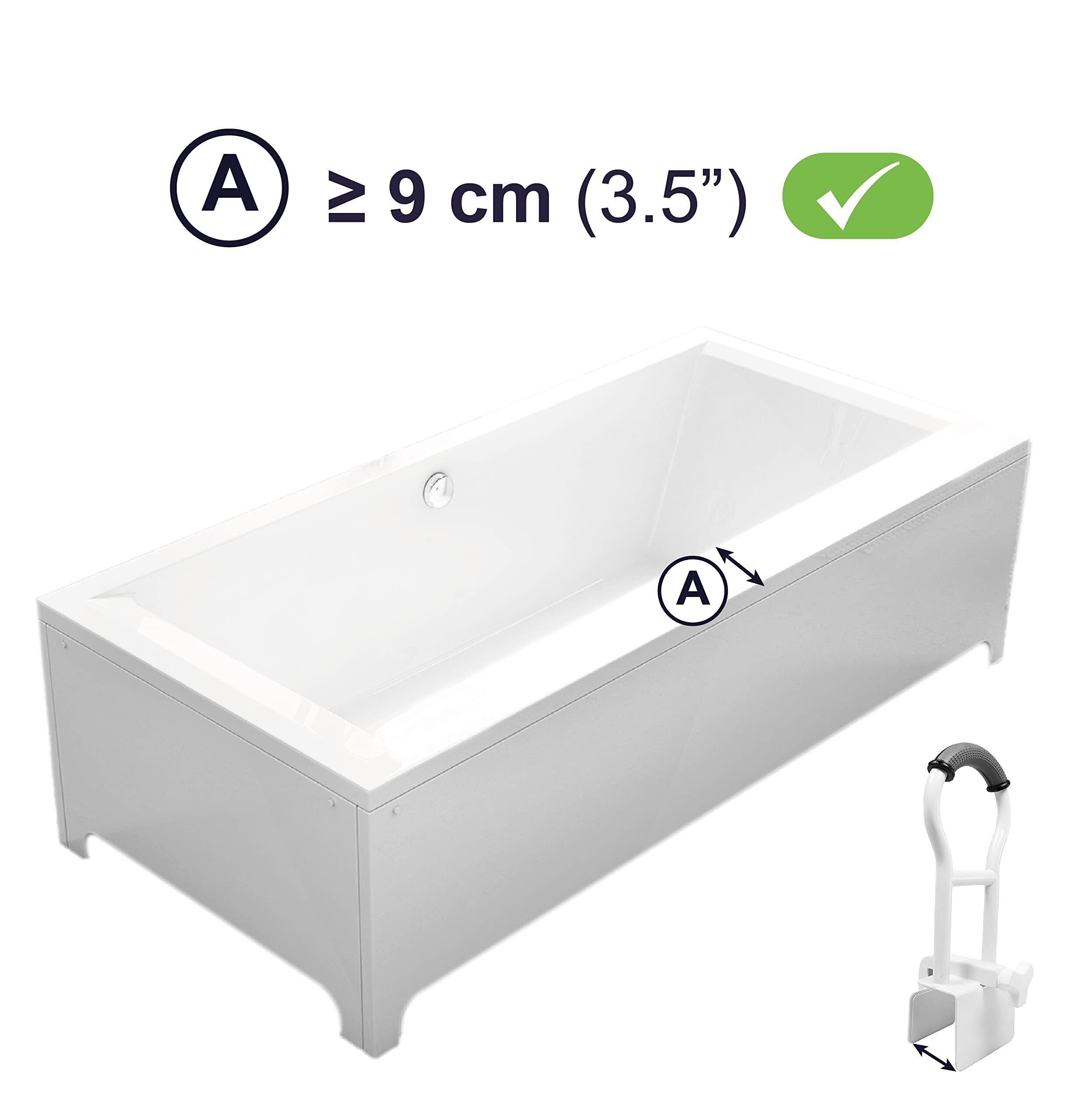 適応性: 9 ~ 17 cm に調整可能な設定のおかげで、この浴槽の安全手すりは浴槽に簡単に固定できるため、滑りや転倒などのリスクを回避できます。さらに、ゴム製のパッドが浴槽に傷がつくことを防ぎます。