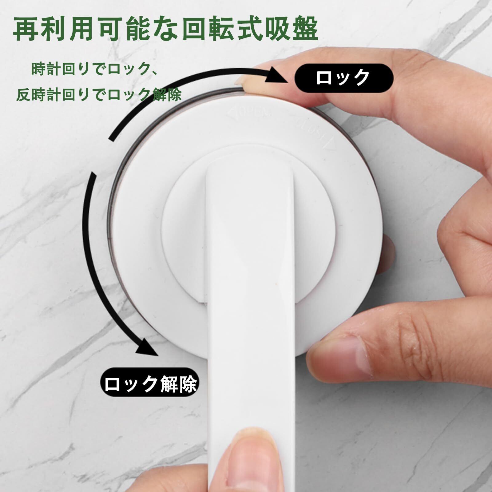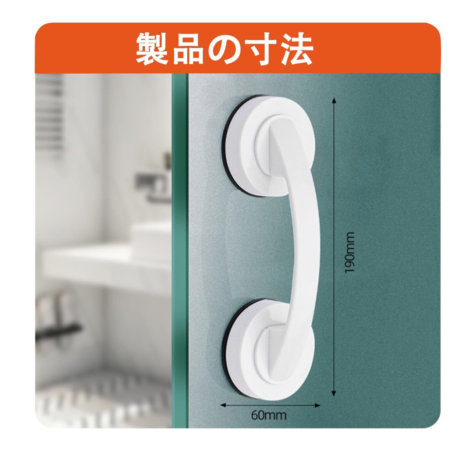 Frenflu 吸盤式ドアハンドル 2個セット 強力吸盤 手すりドアハンドル 浴室扉取っ手 白い
