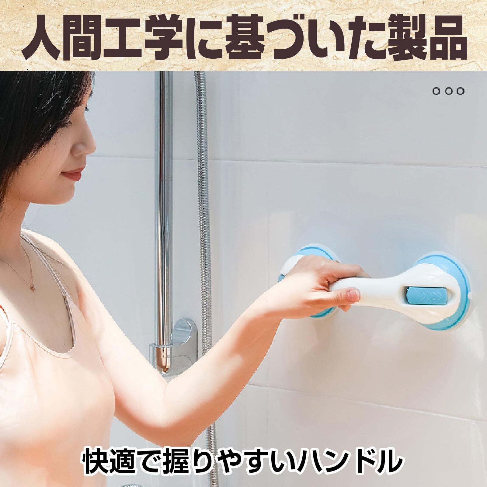 【商品説明】転倒防止、立ち座りサポート、ベッドなどでの立ち上がり補助用の吸盤式手すり 2個セット。吸盤式ですので壁に穴を開けずに設置できるので工事も不要、風呂場などの釘の使えない場所にも 吸盤で取り付けが可能です。 浴槽、トイレ、玄関で立ち上がるのに一苦労、廊下、階段に手すりがあったらなどのお悩みを一気に解決します。