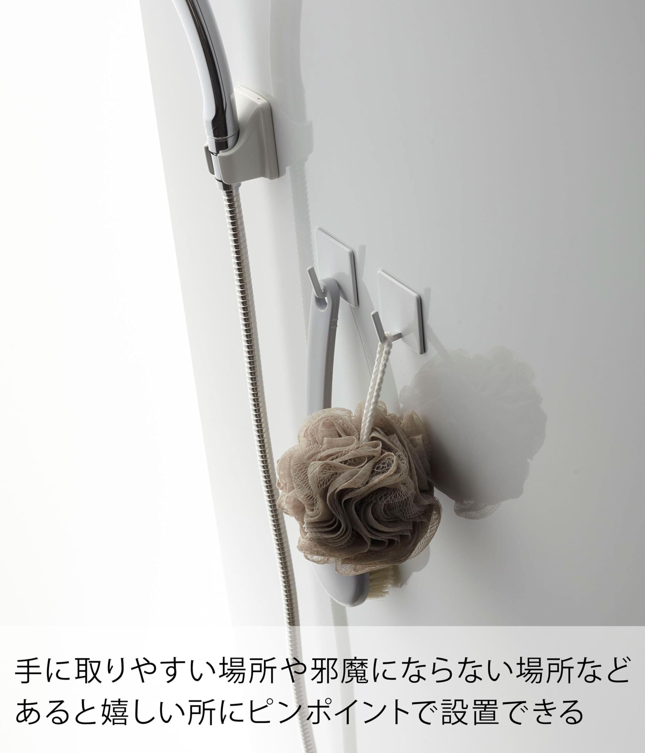 マグネットが付く浴室壁面に簡単取り付けのフック。
