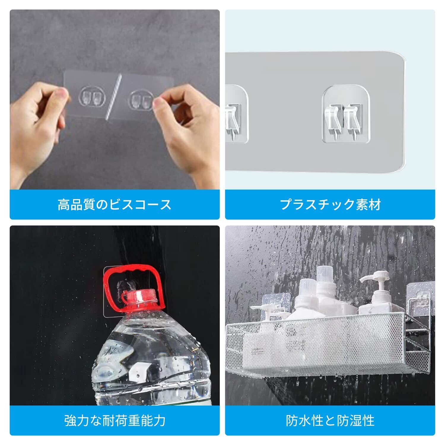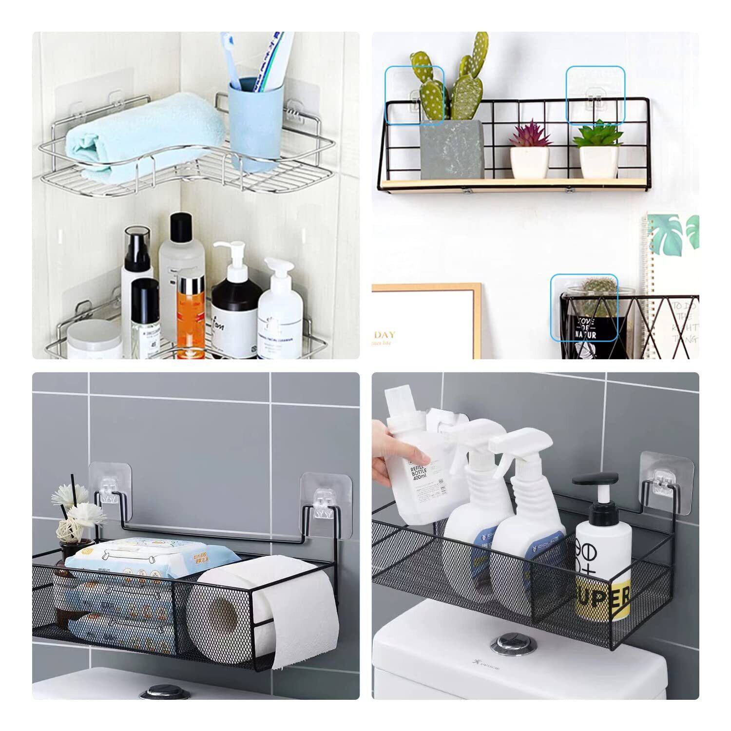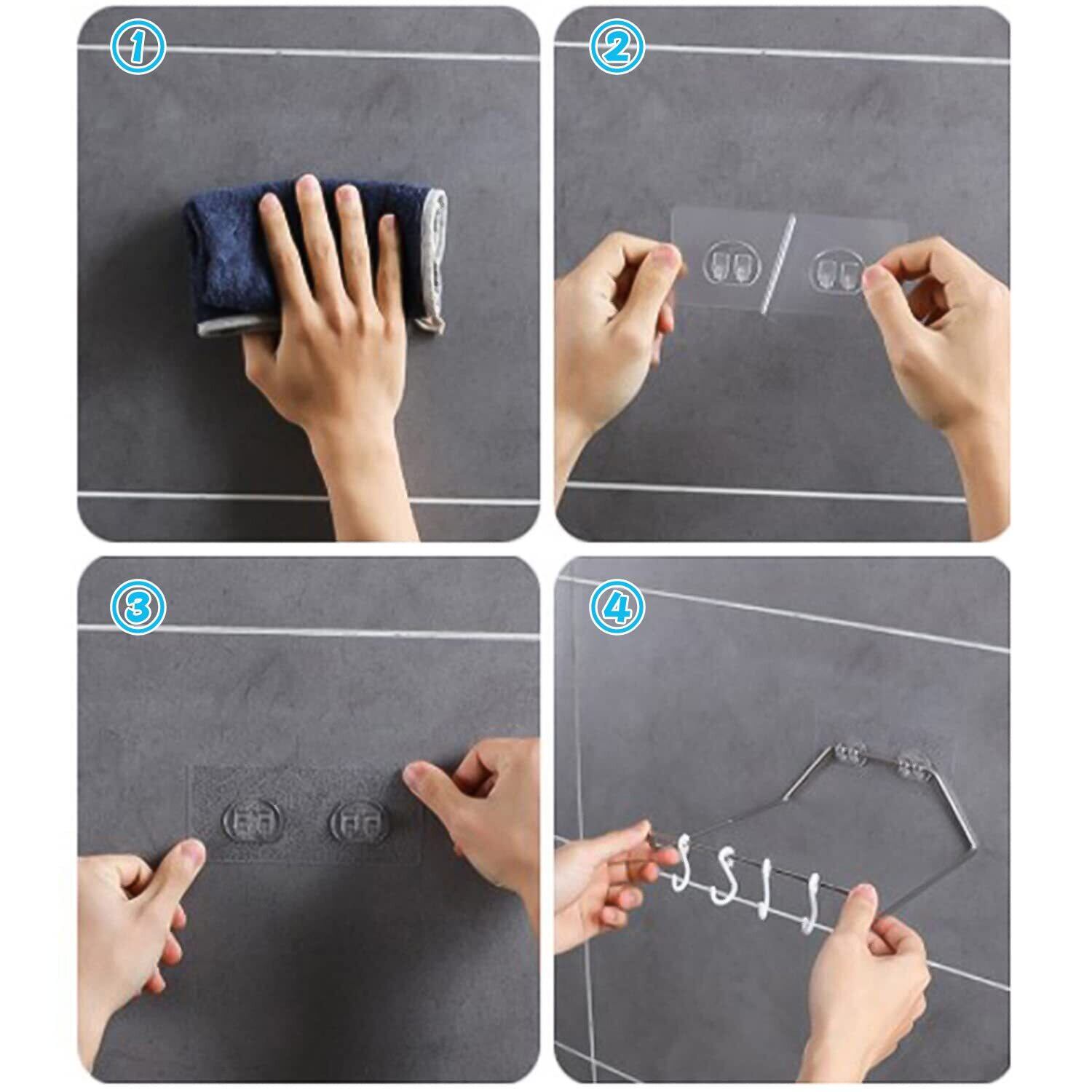 【バスルームラックテープ】4枚の浴室ラックテープは、壁やドアの表面を傷つけることなく、透明で透明な独特のダブルボタン設計を採用しています。バスルームやキッチン、寝室の棚を支えて省スペースにしたり、裁断して使い分けることもできます。2つのフックが連動し、キッチン、バスルーム、寝室、オフィスなどに適したアイテムをすばやくぶら下げることができます。また、家を飾ったり、物を整理したりするのにも役立ちます。