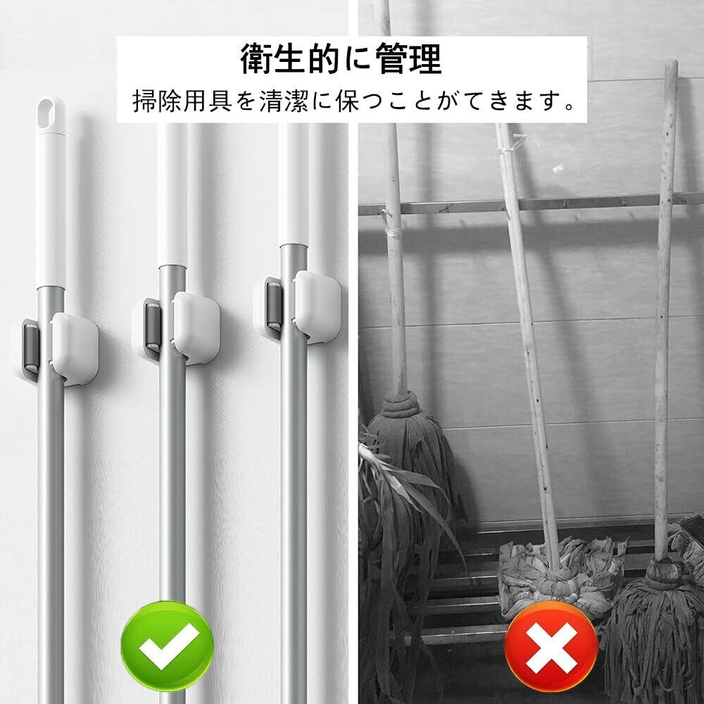 【多様な用途と幅広い適用性】:このモップホルダは、ほうき、モップなどのクリーニングツールだけでなく、ブラシ、モップなどの他の小物を固定するためにも使用できます。家庭、オフィス、キッチン、トイレなどさまざまな場所で使用するのに最適です。