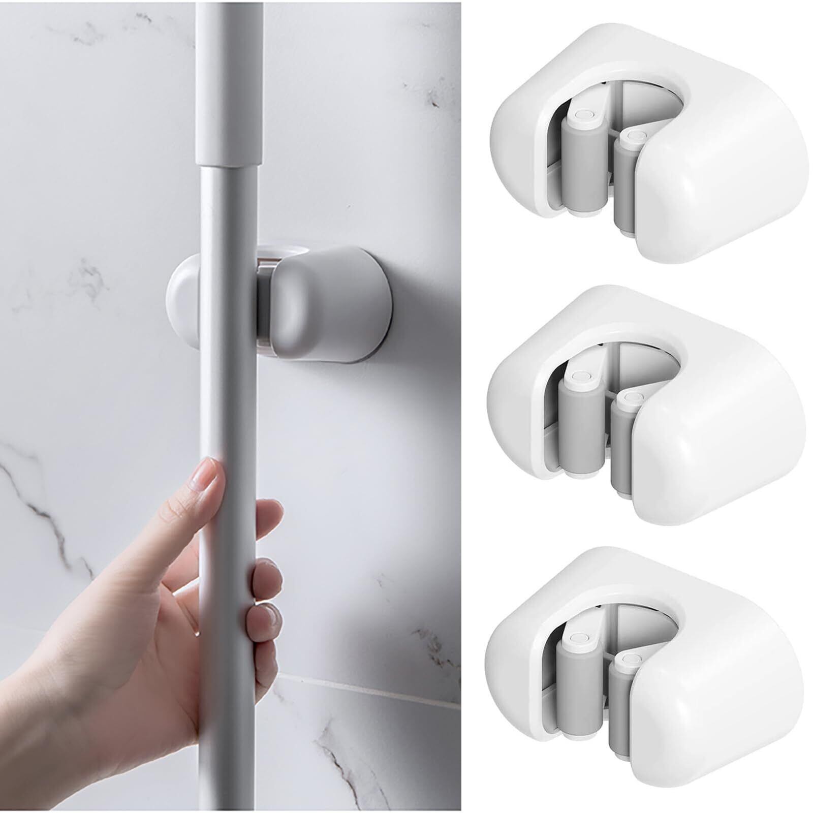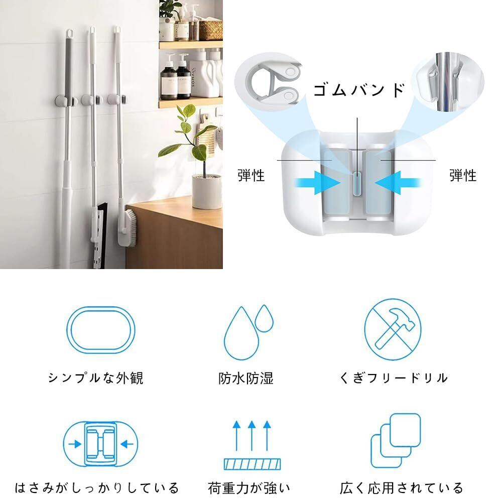 LEACAGR モップホルダー【3枚入り 】ほうき モップ ホルダー 強力粘着 穴あけ不要 掃除道具 モップハンガー 壁掛け モップハンガー モップクリップ【 白い】