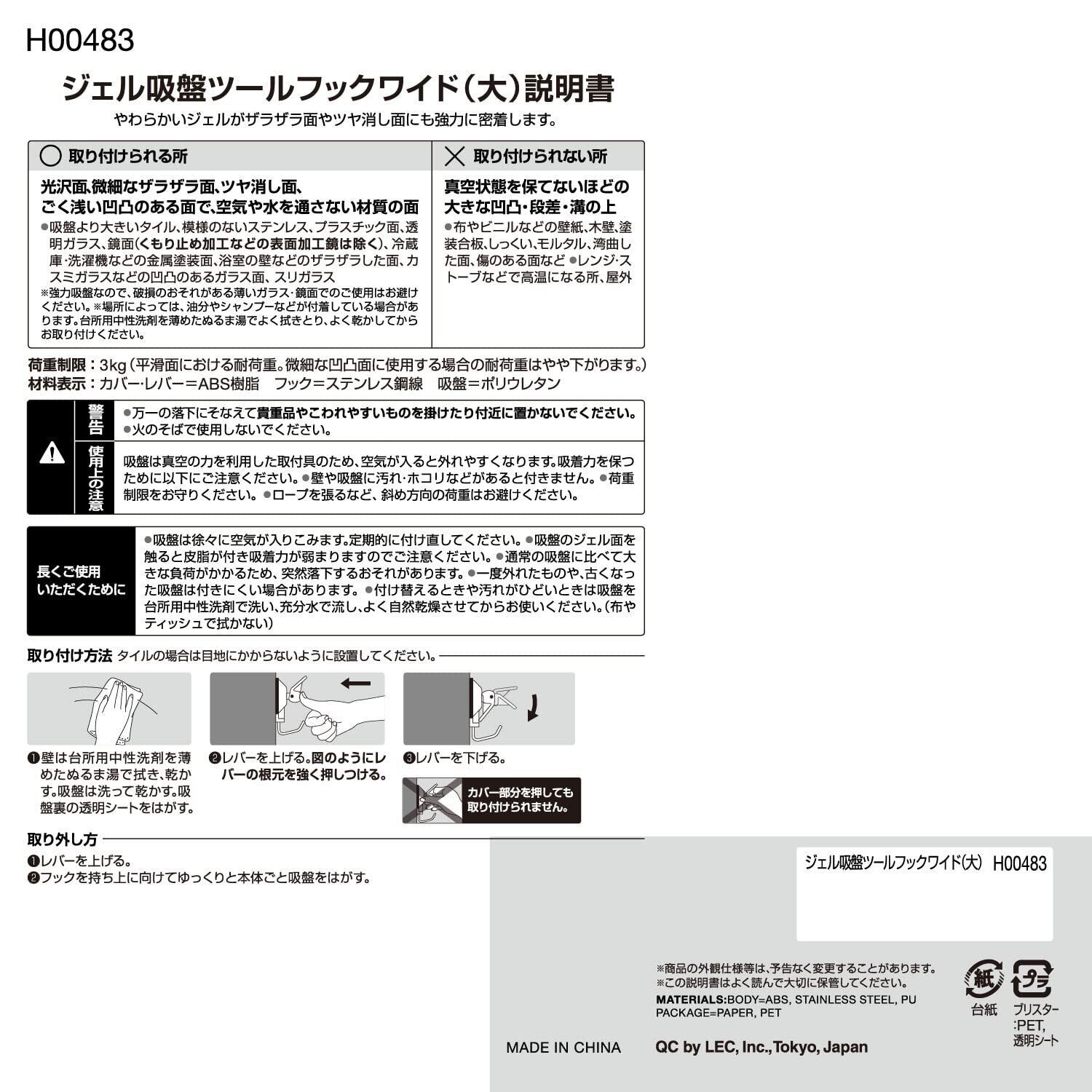 レック(LEC) ジェル吸盤 ツールフック ワイド 大 1個入 耐荷重 3kg