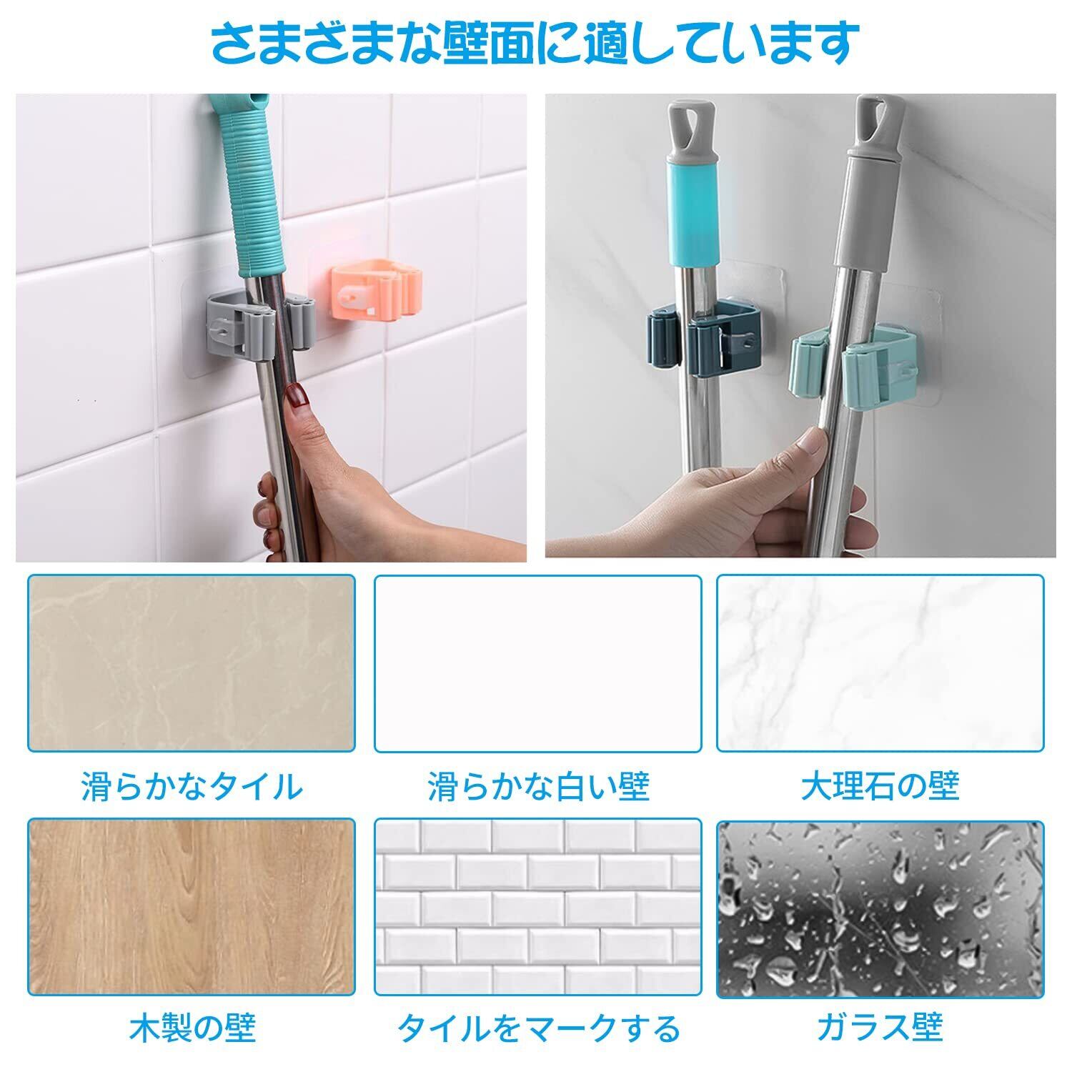 【モップホルダー】 モップホルダーなら吊るせる様々な道具を簡単に整理,積み重ねでき、壁掛け収納ラックは壁に貼れる粘着タイプなので、リビングなど様々な場所で有効活用できます。モップやほうきを使いたいときにサッと 取り出せます。掃除の効率を高めるのに役立つことでしょう。さまざまな場所で使用できる壁掛け式の省スペースで、滑り止めマットも付いています。 より快適な生活空間を創造します。