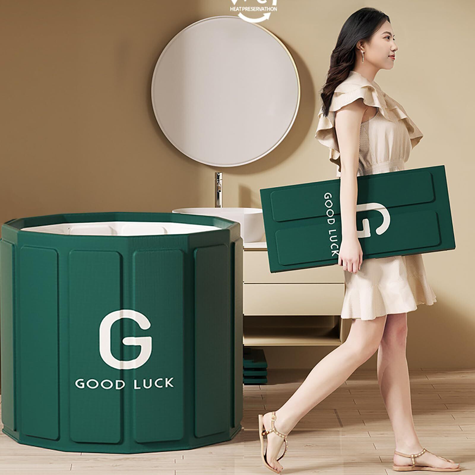 折りたたみ浴槽 ポータブルバスタブ 大人の子供SPA 折り畳み バスタブ お風呂の浴槽 キャンプに 持ち運び浴槽 ビニールプール 家庭用 バスタブ シャワールームに バケツ (グリーン 70*65cm)