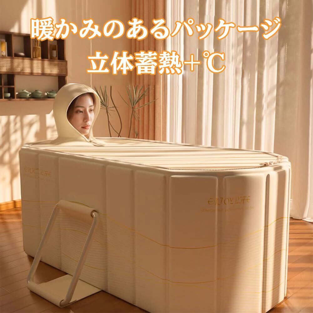 【2種類のスタイルから選べる多用途デザイン】:この簡易風呂は「保温カバー付きタイプ」と「カバーなしタイプ」の2種類をご用意。カバー付きは長時間の入浴でも温度を維持でき、寒い季節のお風呂に最適。カバーなしはシンプルで自由度が高く、アイスバスや水風呂としてすぐに温度を変えたい場合に便利です。夏はプールや冷水浴、冬は温かいバスタブとして、一年を通して多彩な使い方ができるポータブルバスタブです
