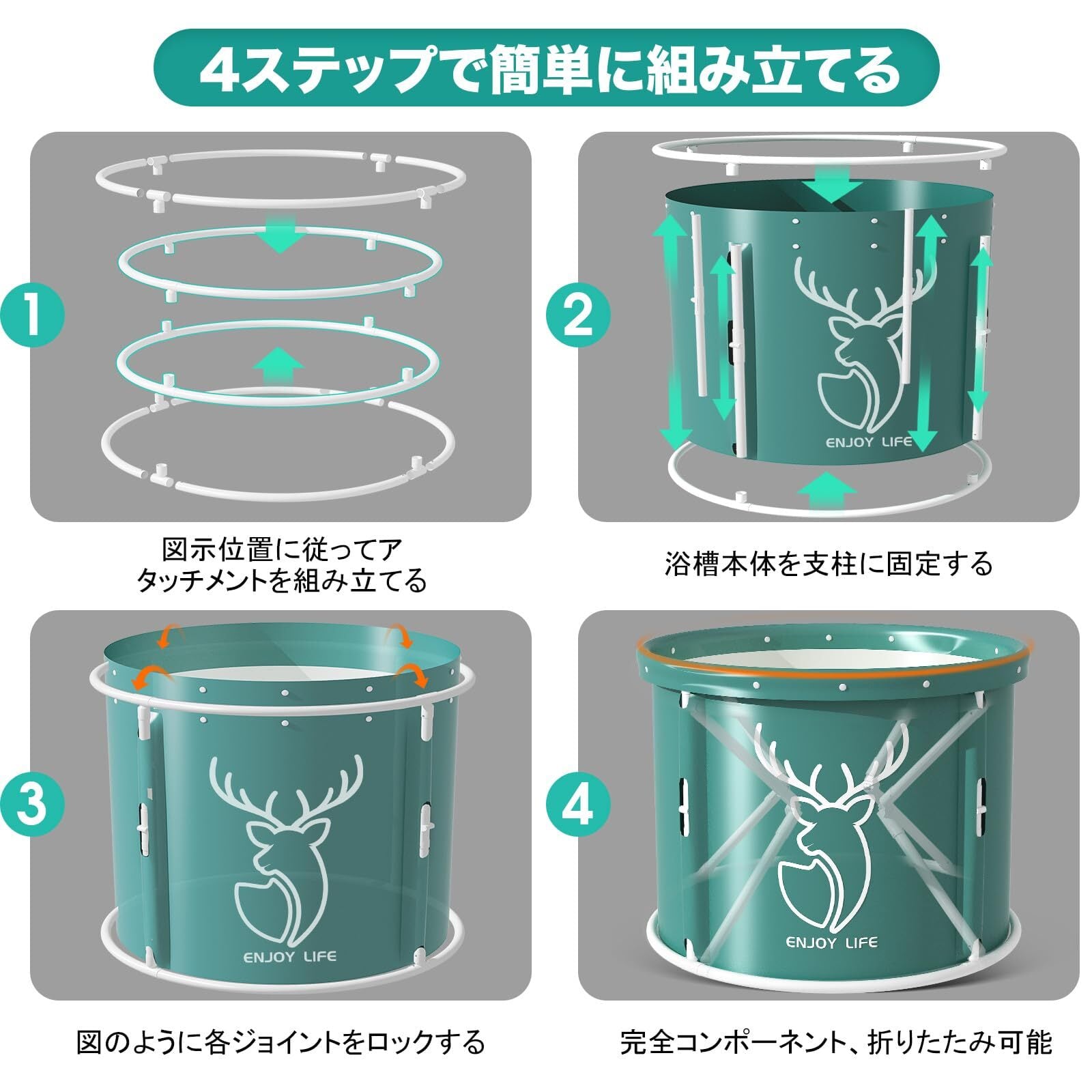【折りたたみ式のプラスチック風呂】組み立てや排水がしやすく、5分で組み立てが完了できる。浴槽がないお家でも、お湯に浸かるバスタイムが可能。簡単に折りたたんで保管すると、いつでもどこでもスパの時間を楽しむことができ、あまりにも多くの時間と労力を費やす必要はありません。