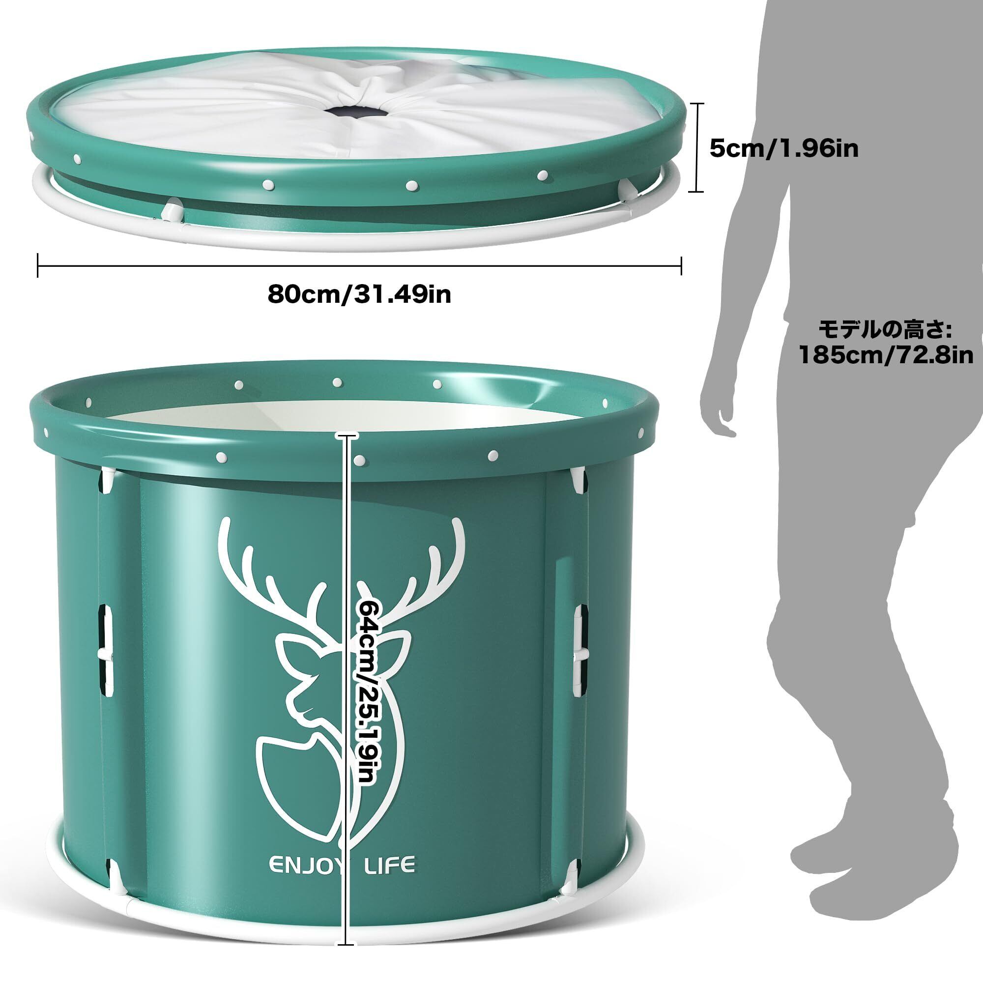 【収納しやすい】組み立てられたサイズは80 x65cmです。この浴槽は非常に軽量で持ち運び可能で、折りたたむことができ、収納もとても簡単です。