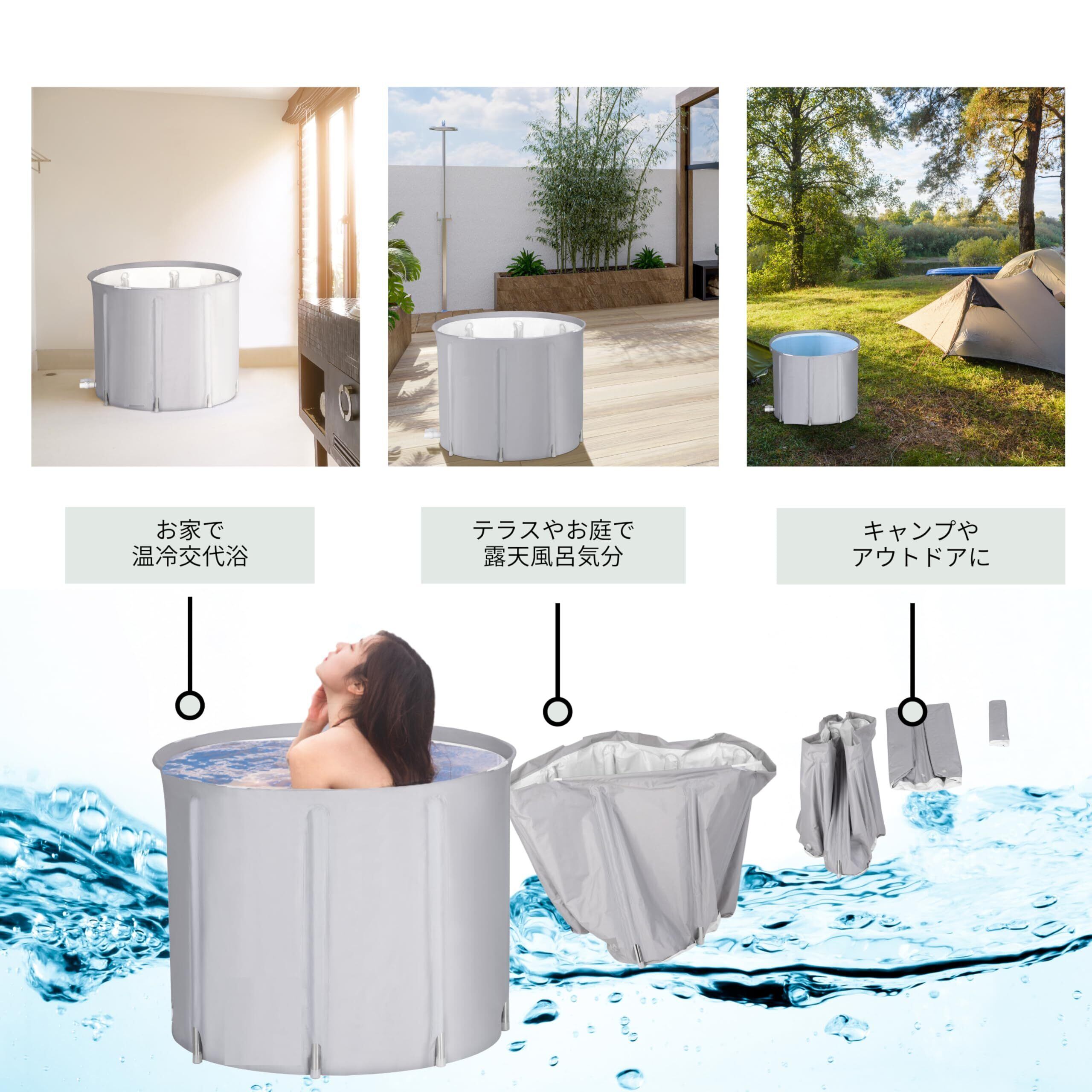 【お家でととのう。温冷交代浴が出来る!】新シンプルデザインに変更!ロゴを無くし汚れにくい素材や支柱キャップのカラー変更。お家で整いたい人必見!組み立て簡単 ポータブル バスタブがあれば温冷交代浴が簡単。大柄な男性でもしっかり肩まで浸かれる折り畳み浴槽。