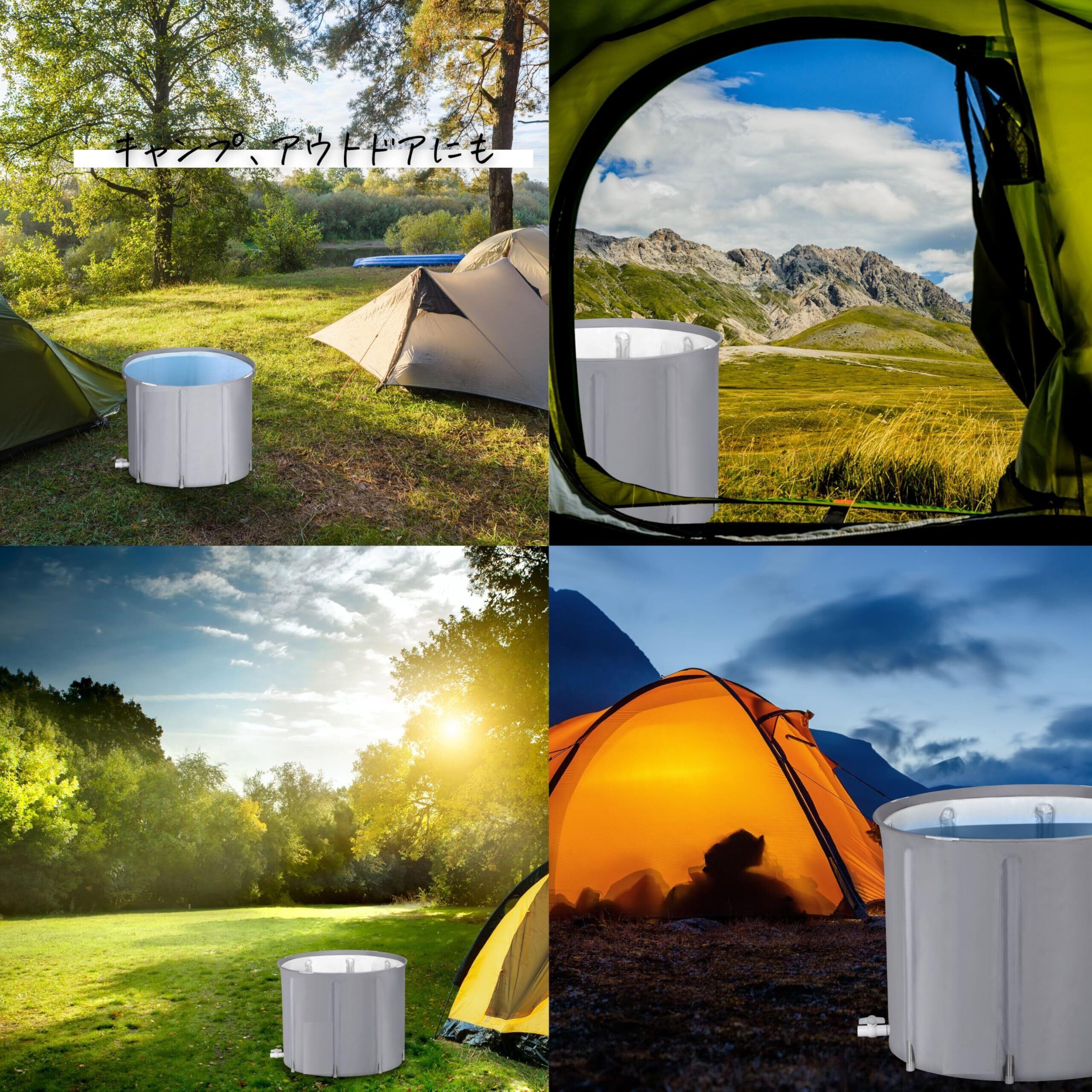 【キャンプ・アウトドアで露天風呂】庭、ベランダに設置して露天風呂にしたり、夏は子供の折りたたみプール・ビニールプールとしても使えます。災害などでお風呂場を使えなくなった時の、簡易浴槽としても利用できます。