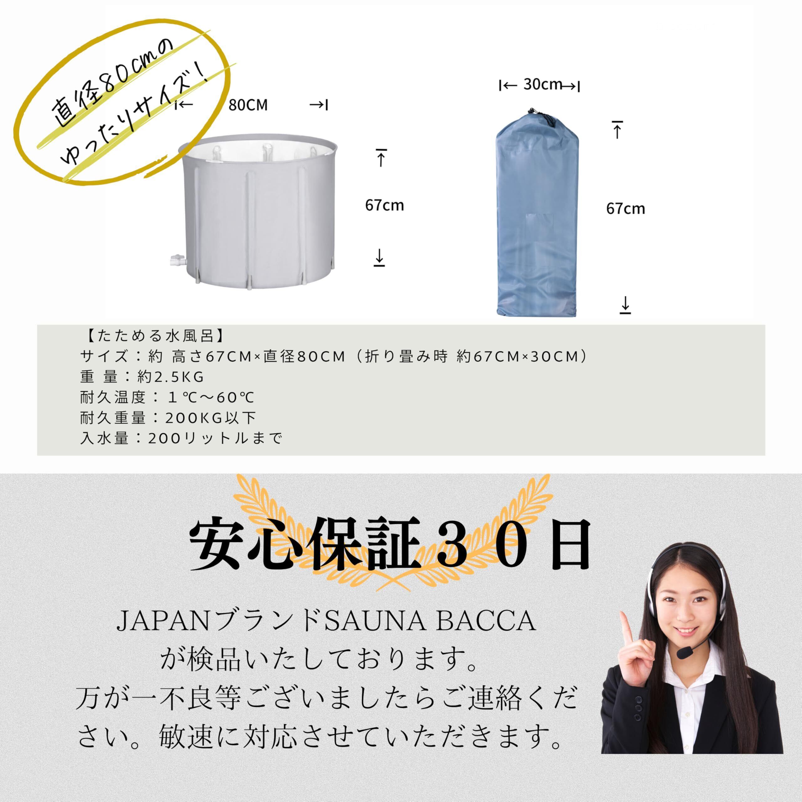 SAUNA BACCA ポータブル浴槽 お風呂 露天風呂 折りたたみ コンパクト浴槽 簡易浴槽 バスタブ サウナ 水風呂 たためる水風呂 おうちプール ビニールプール