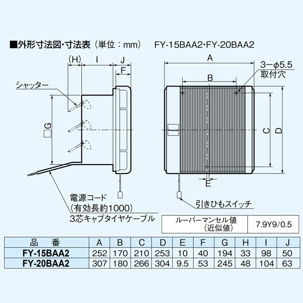 Panasonic (パナソニック) 浴室用換気扇 FY-15BAA2