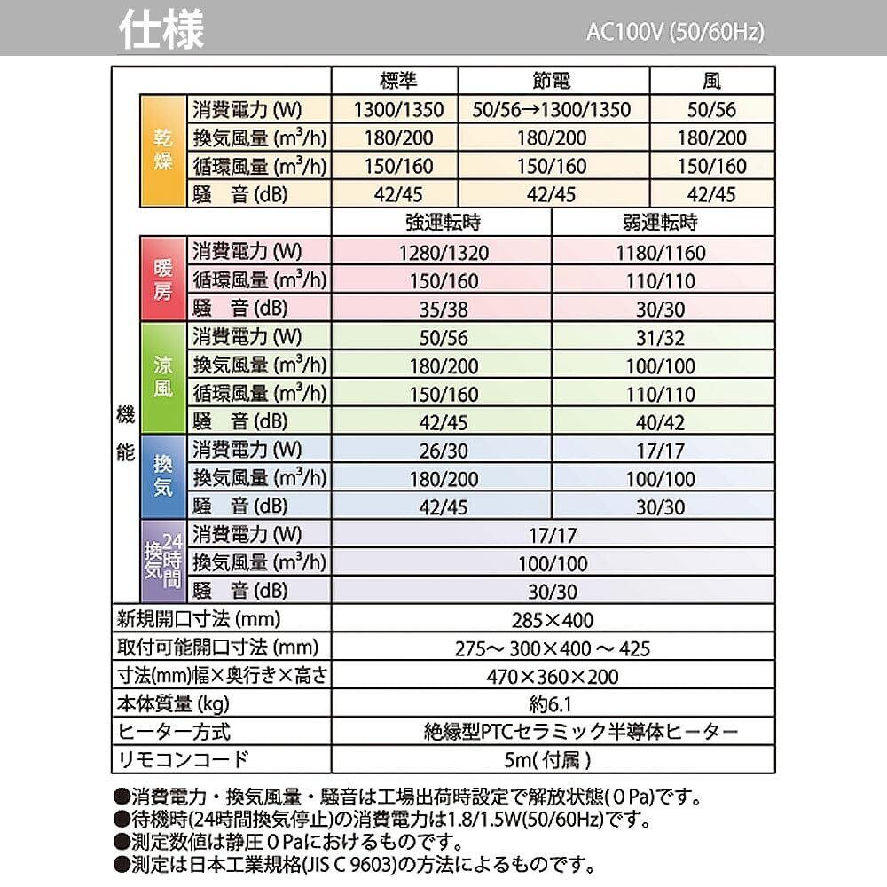 【高須産業 浴室 暖房 乾燥 セット解説3】乾燥・暖房・涼風・換気・24時間換気/24時間換気一時停止機能