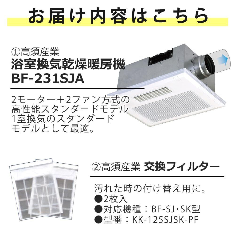 高須産業 浴室乾燥機 浴室暖房 BF-231SJA 浴室換気乾燥暖房機 浴室 換気扇 パネル フィルター 2枚 セット
