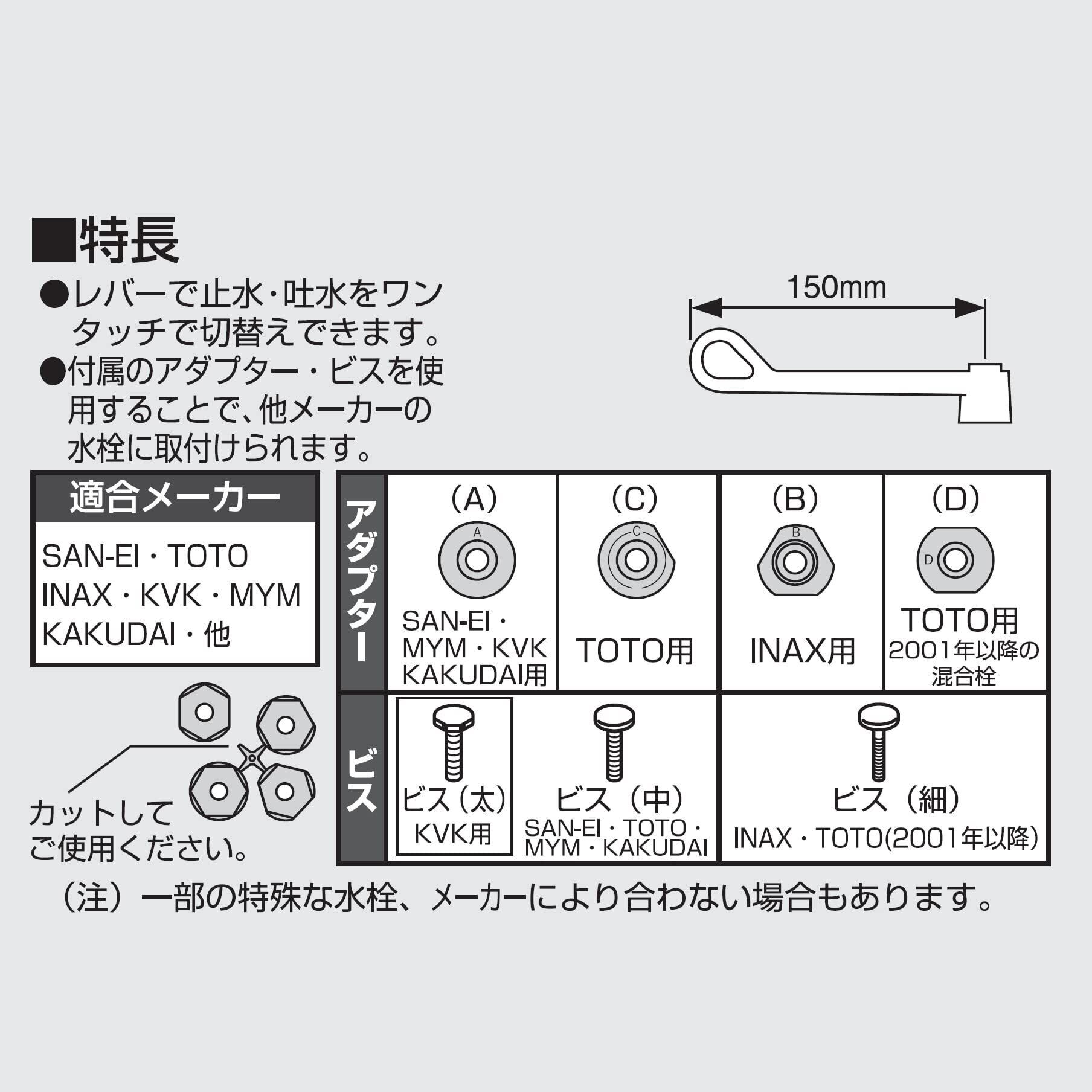 【適合メーカー】SANEI・TOTO・INAX・KVK・MYM・KAKUDAI他 ※一部の特殊な水栓、メーカーにより合わない場合もあります。