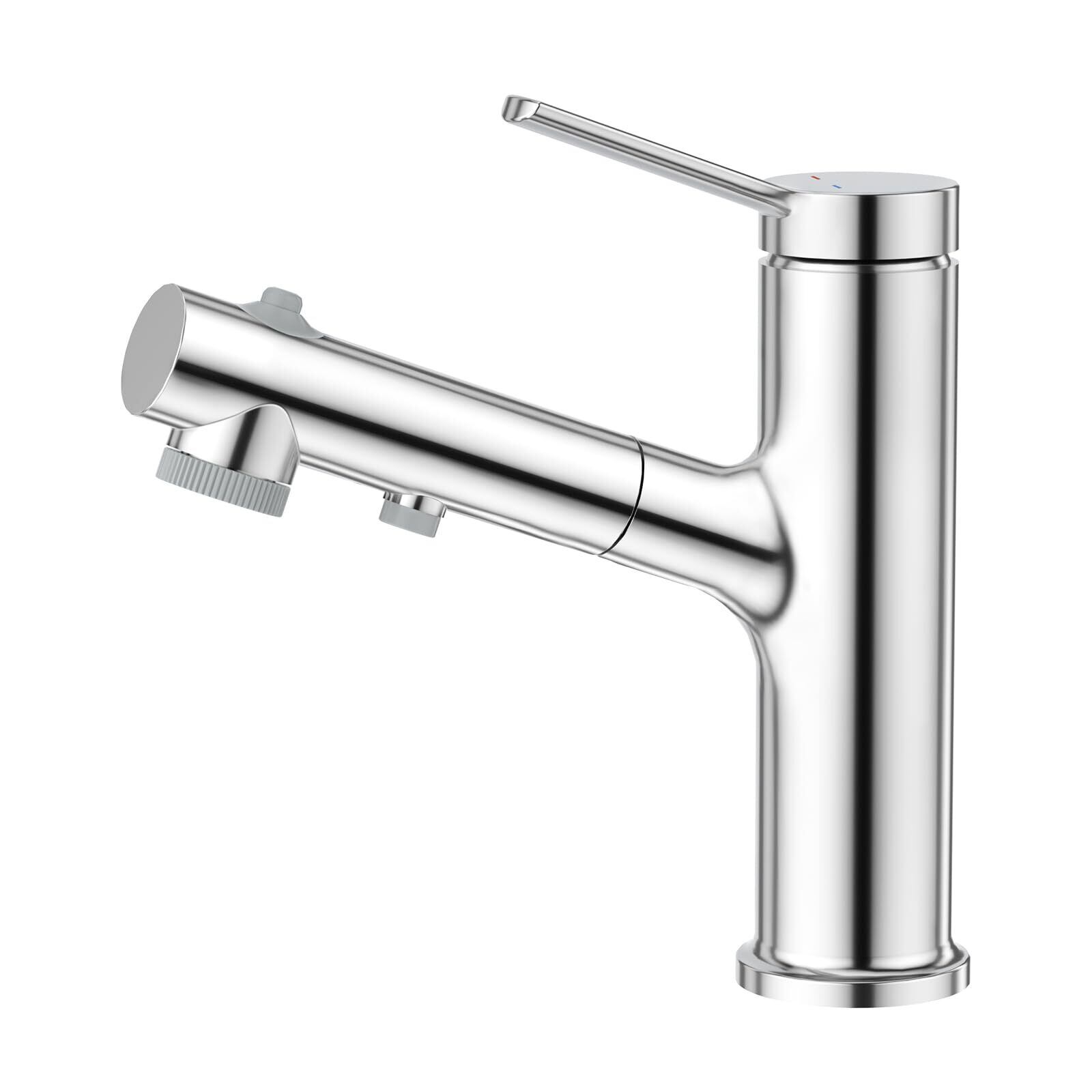 faustina洗面水栓 蛇口 洗面台混合水栓 3モード水流 洗面台 シャワー水栓 シングルレバー混合栓 ホース引き出し式 洗面所蛇口 クロムメッキ