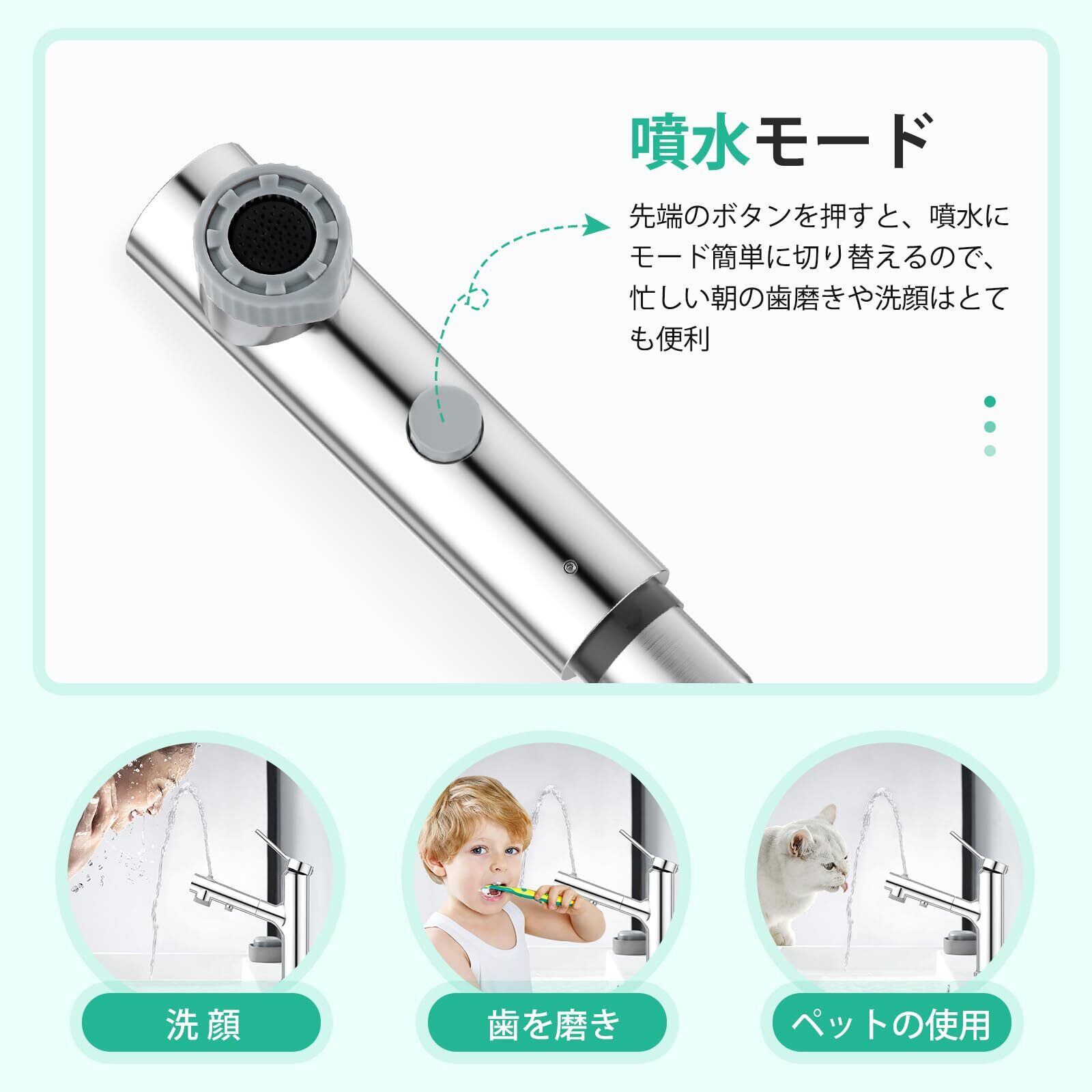 3モード水流:洗面台水栓はシャワー、泡沫整流、噴水モードを備えて、水栓の先端に切り替える便利設計。洗面台の洗面、洗髪、子供の使用、猫などのお風呂に便利です。