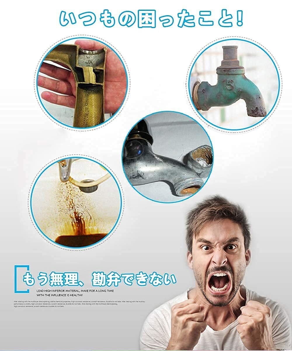 【取り付け簡単】①水道を閉めます。②元の水栓をモンキーレンチで引っ掛け回りで緩め外します。③歯ブラシで穴に残ったシールテープを清理します。④本品にシールテープを巻き付けます。⑤本品を穴に差し込み、モンキーレンチで回して、適当な部位を引っ掛け締め上げます。⑥水道を緩めます。(水漏れのないように、しっかりインストールしてください)