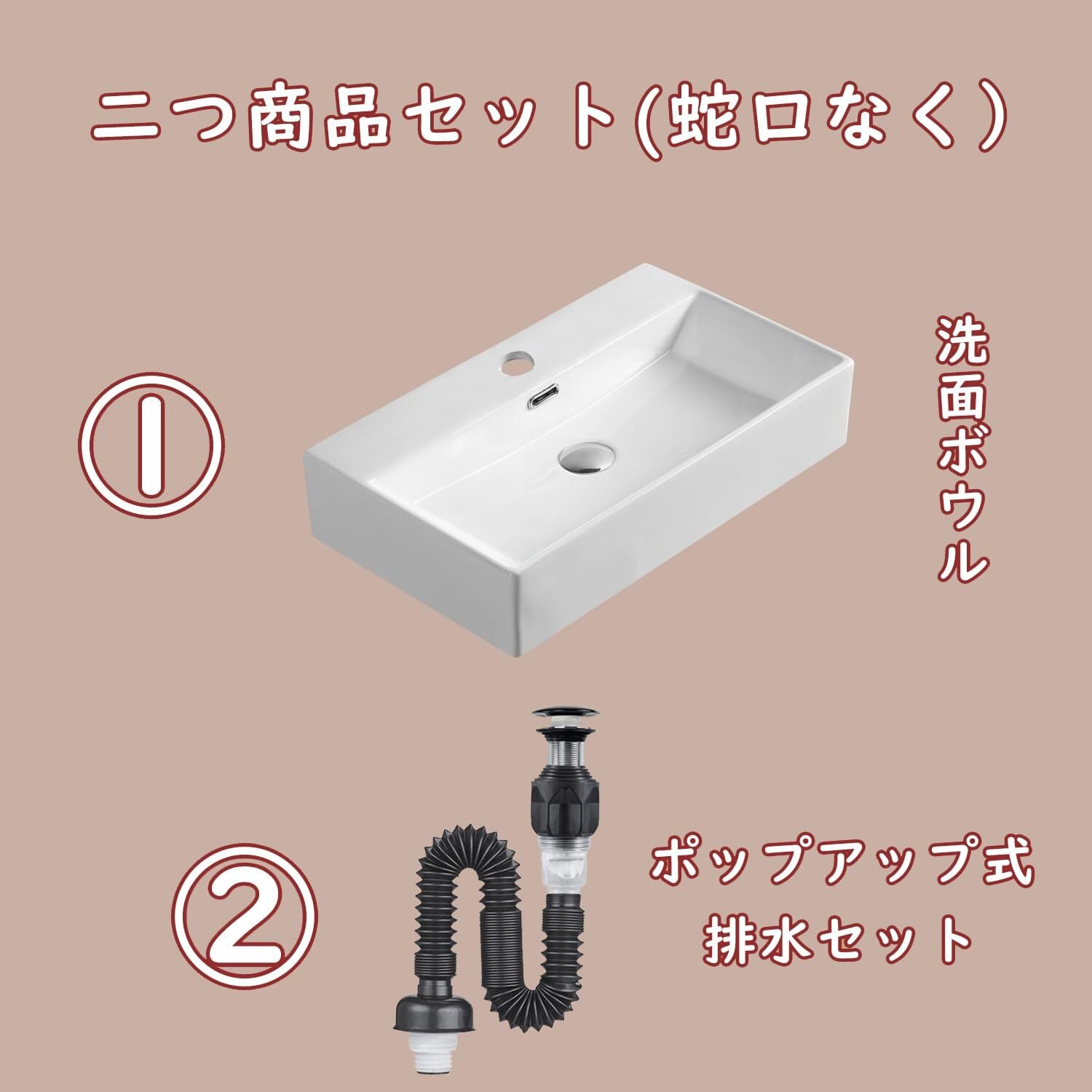 【JOMOWN限定排水セット付き】大型 洗面ボウル おしゃれ 洗面ボール 605*360*130mm 洗面台 置き型 手洗い鉢 陶器製 手洗い器 手洗いボウル (長方形)