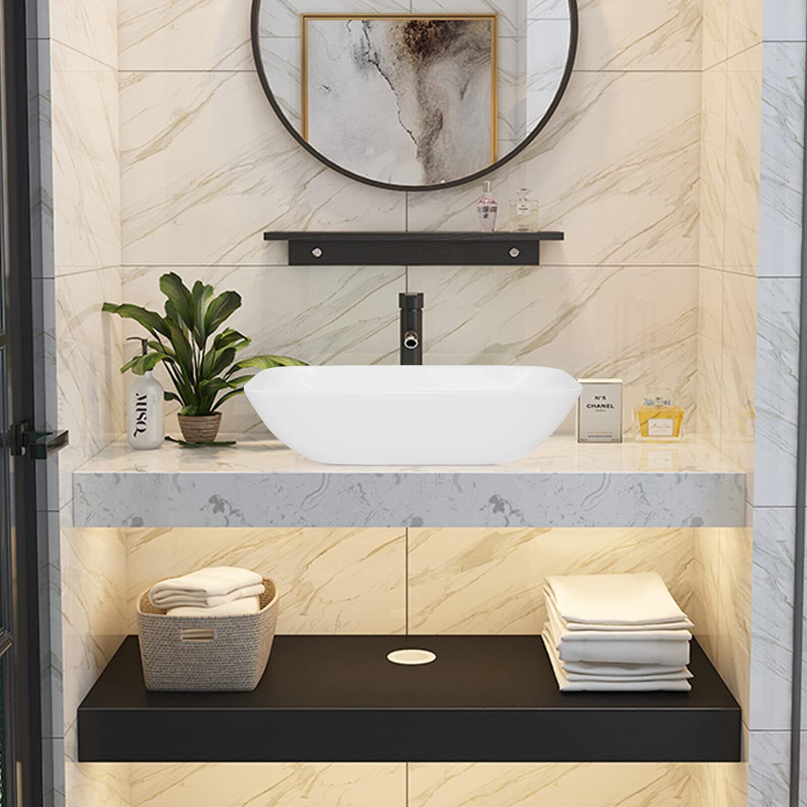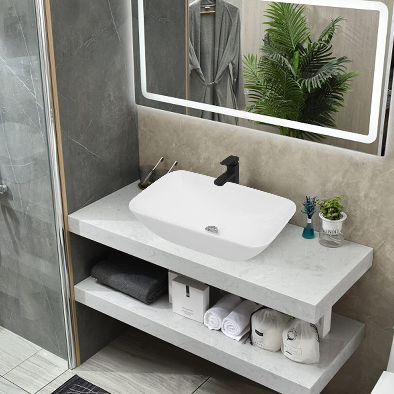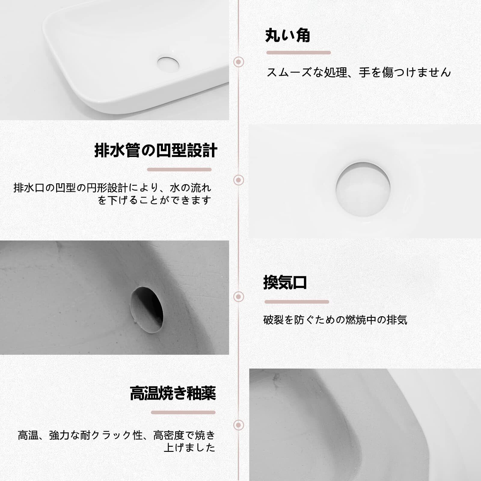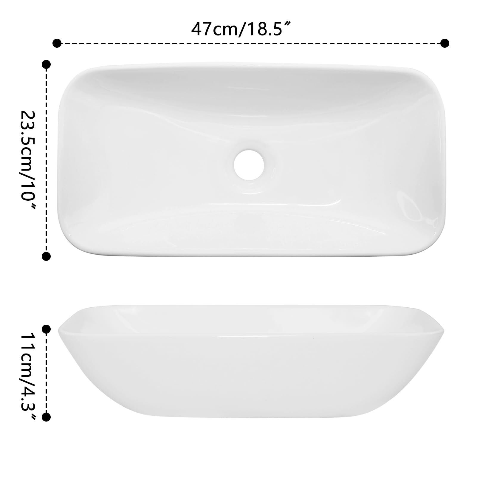 Rxakudedo 洗面ボウル 手洗い器 手洗いボウル 陶器製 小さなトイレに適し 洗面台 長さ47cmx幅さ23.5cmx高さ11cm 含排水管アクセサリー