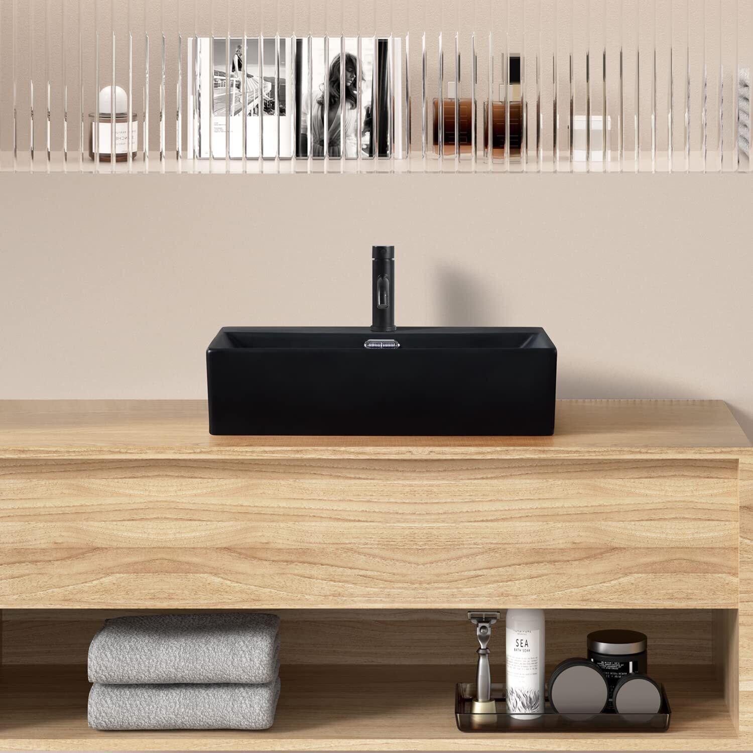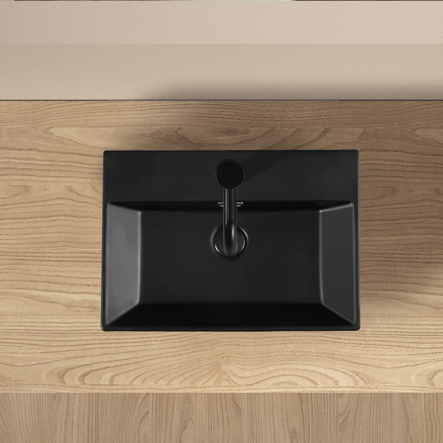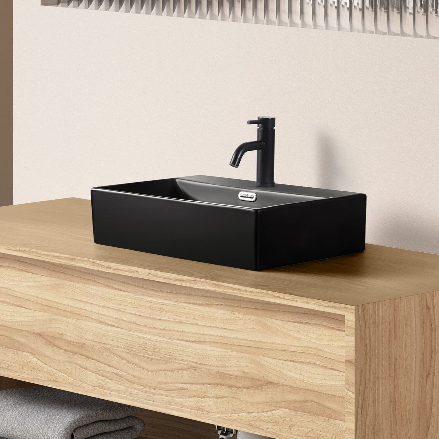 【混合水栓付き】ブラック 洗面ボウル おしゃれ 洗面台セット 大型洗面ボール 置き型 手洗い鉢 陶器製 手洗い器 手洗いボウル 510*360*130mm(長方形)