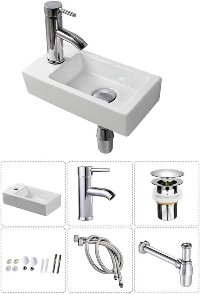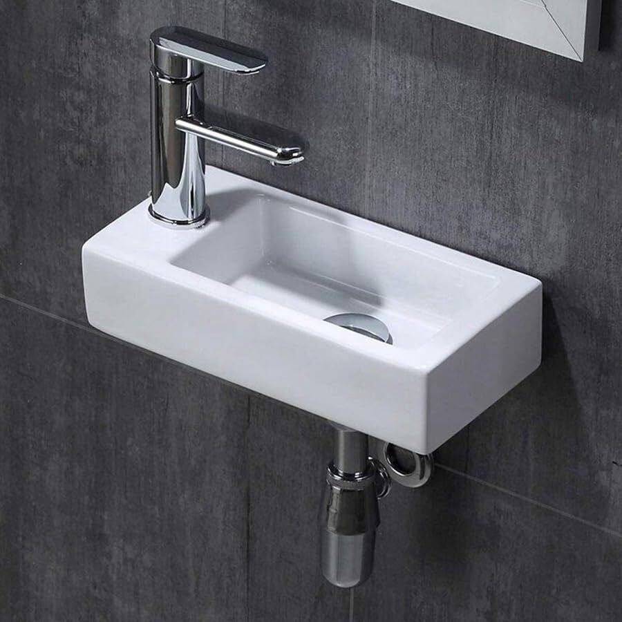 【排水セット付き】 手洗い器 壁掛け 手洗器 陶器 洗面ボウル 洗面台 おしゃれ 手洗いボウル 壁付け型 手洗い台 (37*18*9【(蛇口左)白色】)