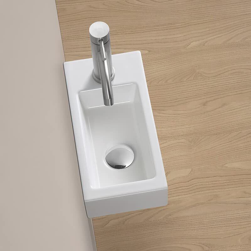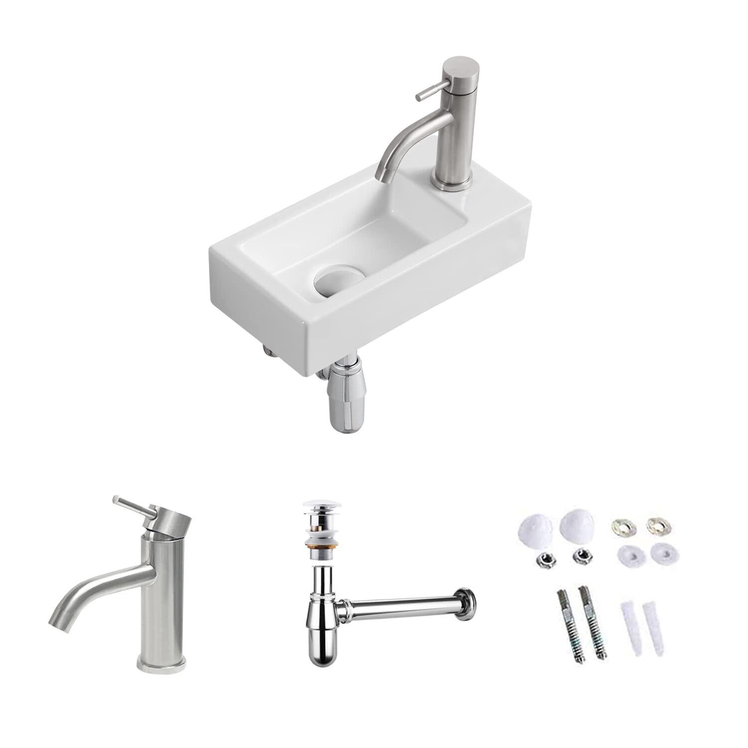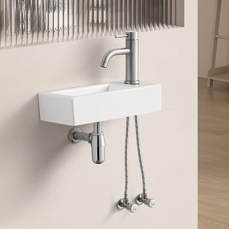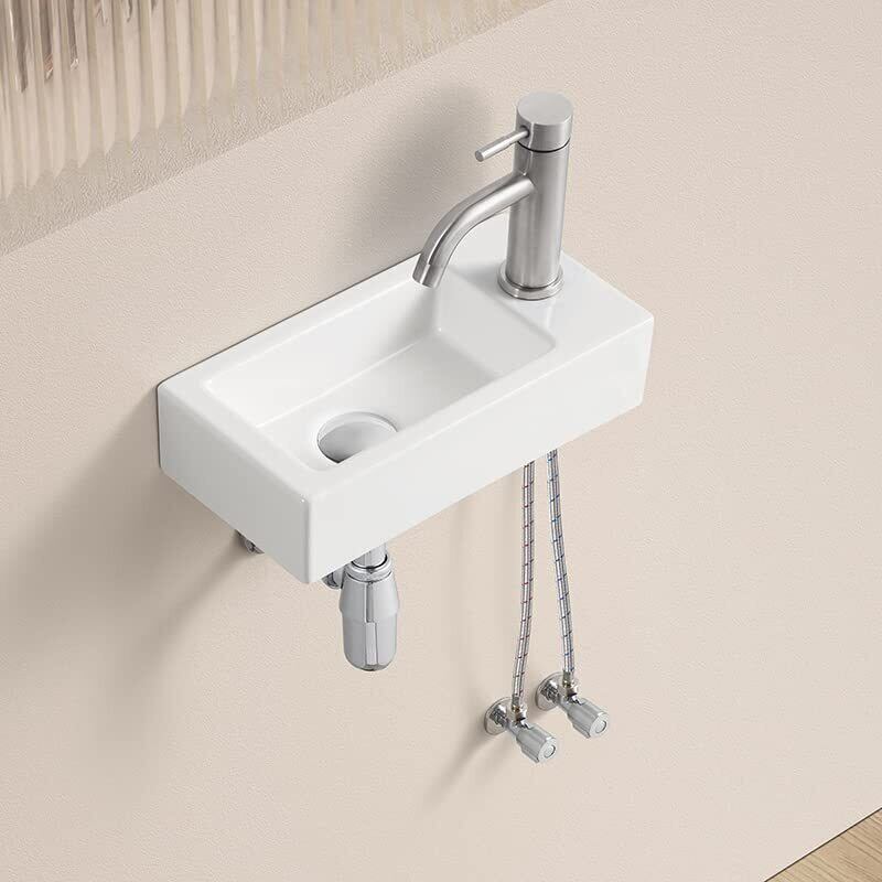 【混合水栓付き】 ミニ 手洗い器 壁掛け 375*190*95mm 手洗器セット 小型洗面ボウル おしゃれ 洗面ボール コンパクト 洗面台 手洗いボウル 壁付け型 陶器 手洗い台 (右側) | KSショップ
