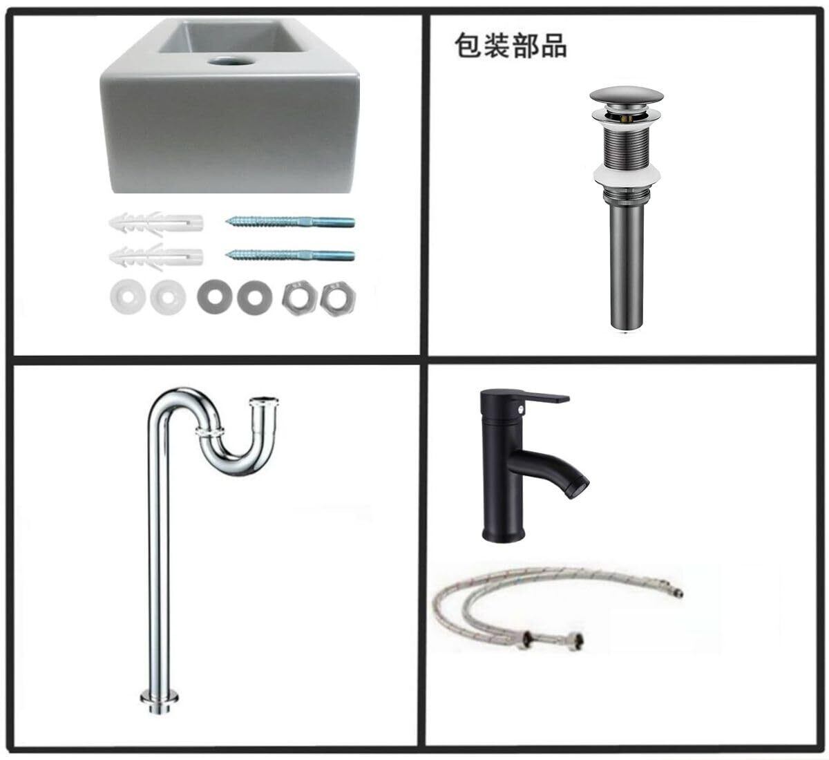 【排水セット付き】 手洗い器 壁掛け 手洗器 陶器 洗面ボウル 洗面台 おしゃれ 手洗いボウル 壁付け型 (37*18*9【(蛇口右)灰色】)