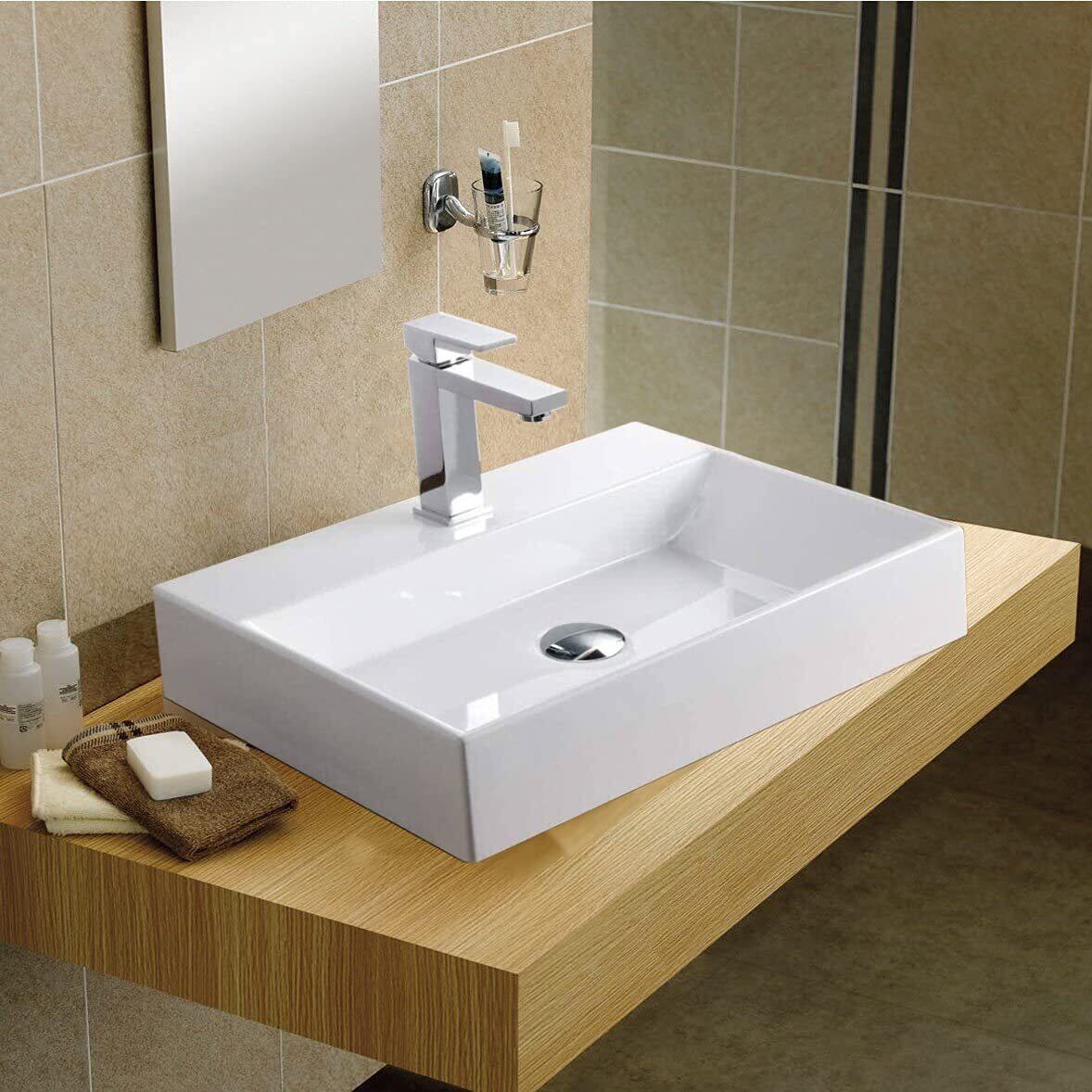 【高級排水セット付き】洗面ボウル 陶器 洗面ボール セット おしゃれ 手洗い器 洗面台 四角型 手洗い鉢 高温焼成 白陶器製 高級排水金具付き トイレ キッチン 和風 洋風 室内 室外(長方形セット)(3-4日到着予定) | KSショップ