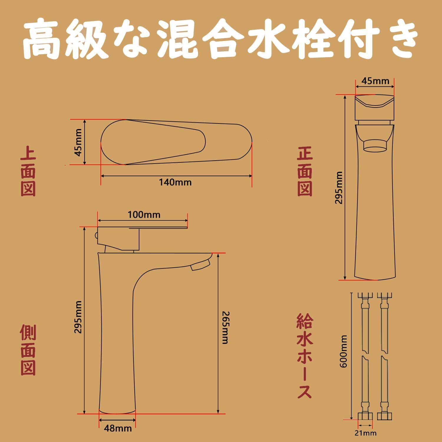 【商品サイズ&設置説明】:洗面器のサイズ:405*310*135mm、重さ:9kg、排水口径:48mm。蛇口の取り付け穴径:35mm、水栓の取り付けホースの規格:G1/2ナッツ(21mm)。 この手洗いボウルはホテル、家、会社、ビル、浴室、トイレなどに適用します。商品は設置が簡単なので、日本語取扱説明書どおりに設置すればでいいです。オシャレなデザインを与えています。