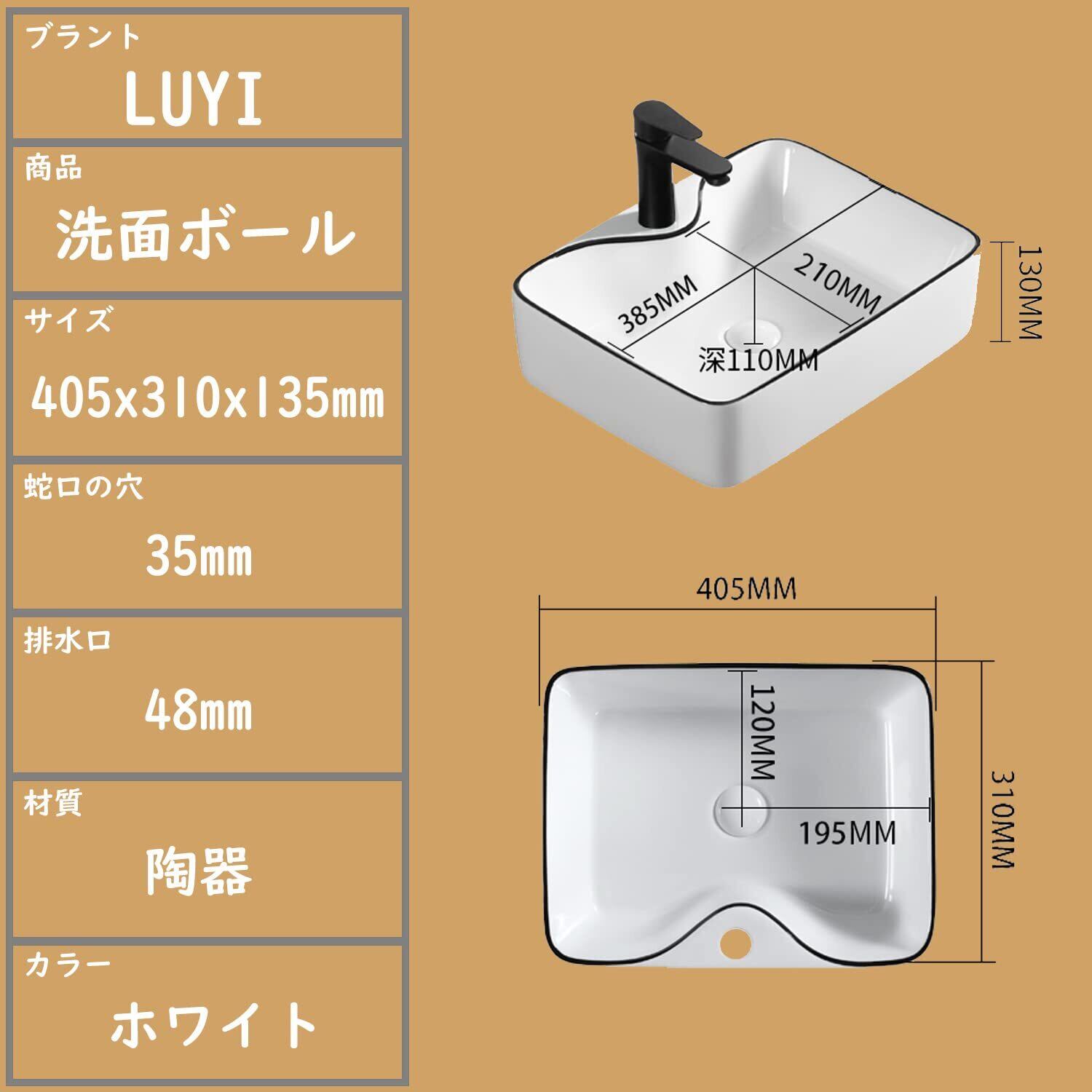 LUYI 洗面台 洗面ボウルセット 黒線 405*310*135mm