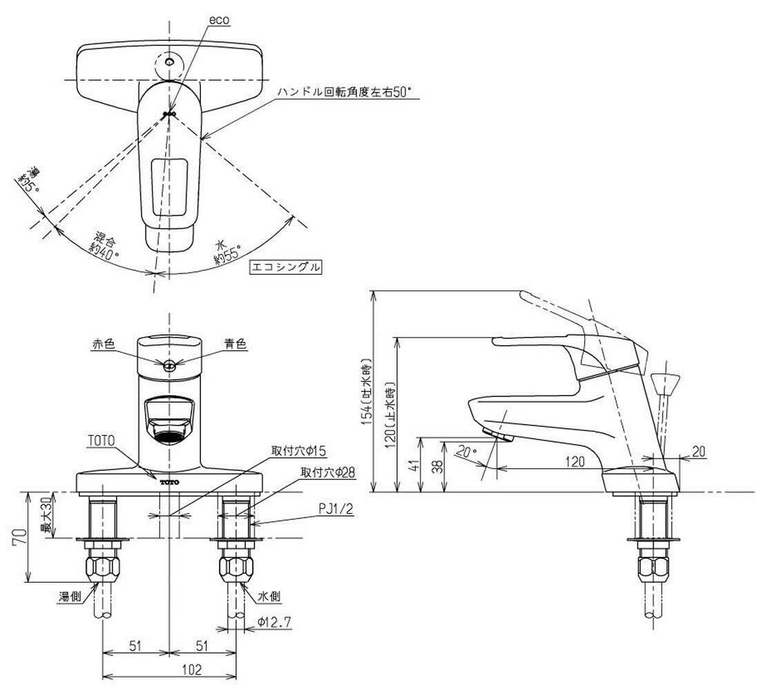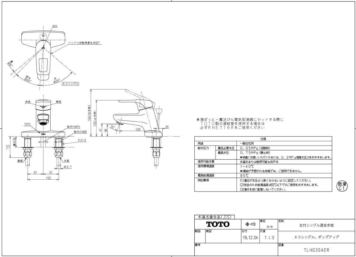 TOTO 洗面所水栓 台付2穴・エコシングル ポップアップ式(取替用) TLHG30AER