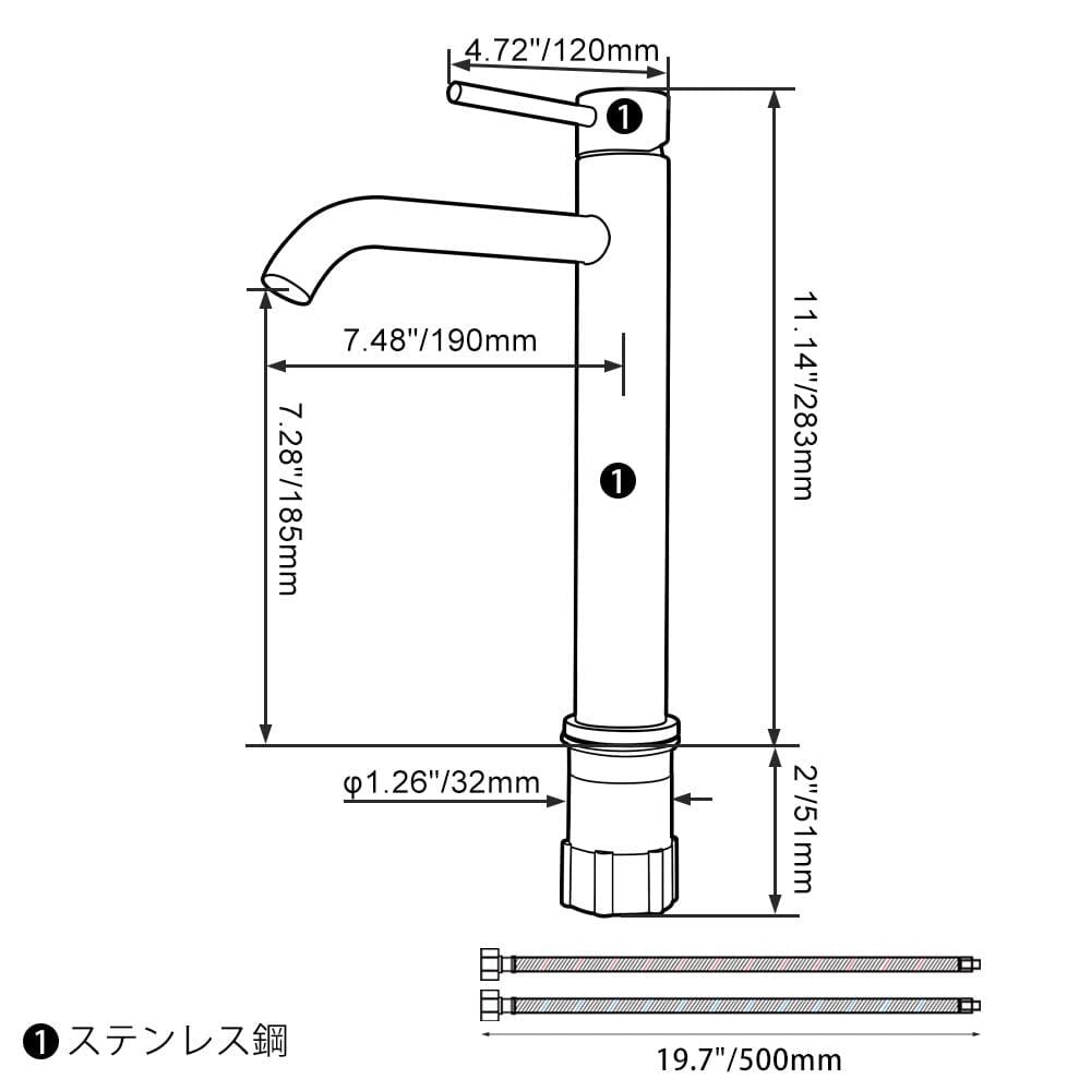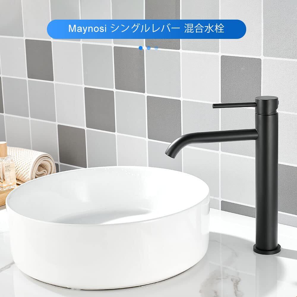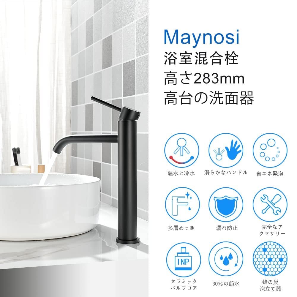 Maynosi 洗面用水栓 洗面台蛇口 シングルレバー 混合水栓 浴室混合栓 手洗いボウル用 高さ283mm 高台の洗面器に適しています シンプルなスタイル ステンレス製 取り付けホース付き 黒