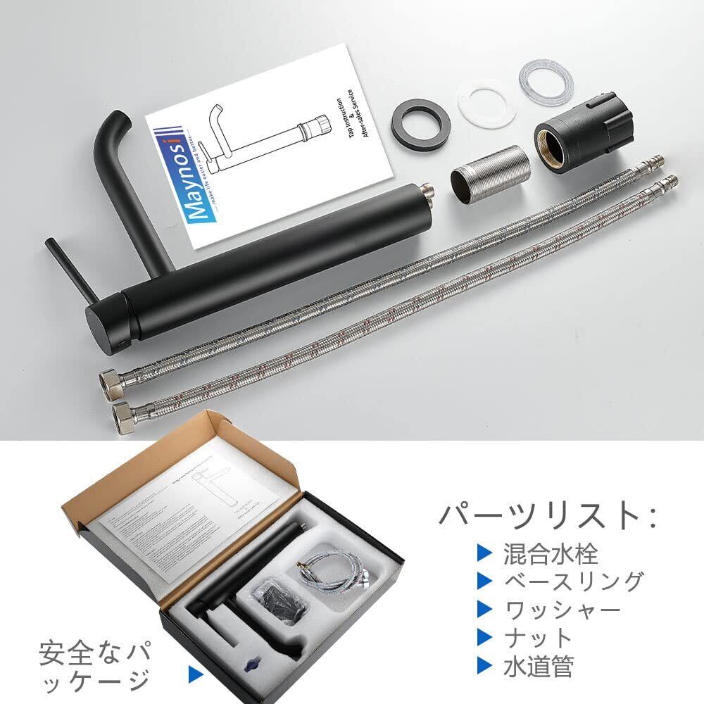 Maynosi 洗面用水栓 洗面台蛇口 シングルレバー 混合水栓 浴室混合栓 手洗いボウル用 高さ283mm 高台の洗面器に適しています シンプルなスタイル ステンレス製 取り付けホース付き 黒 | KSショップ
