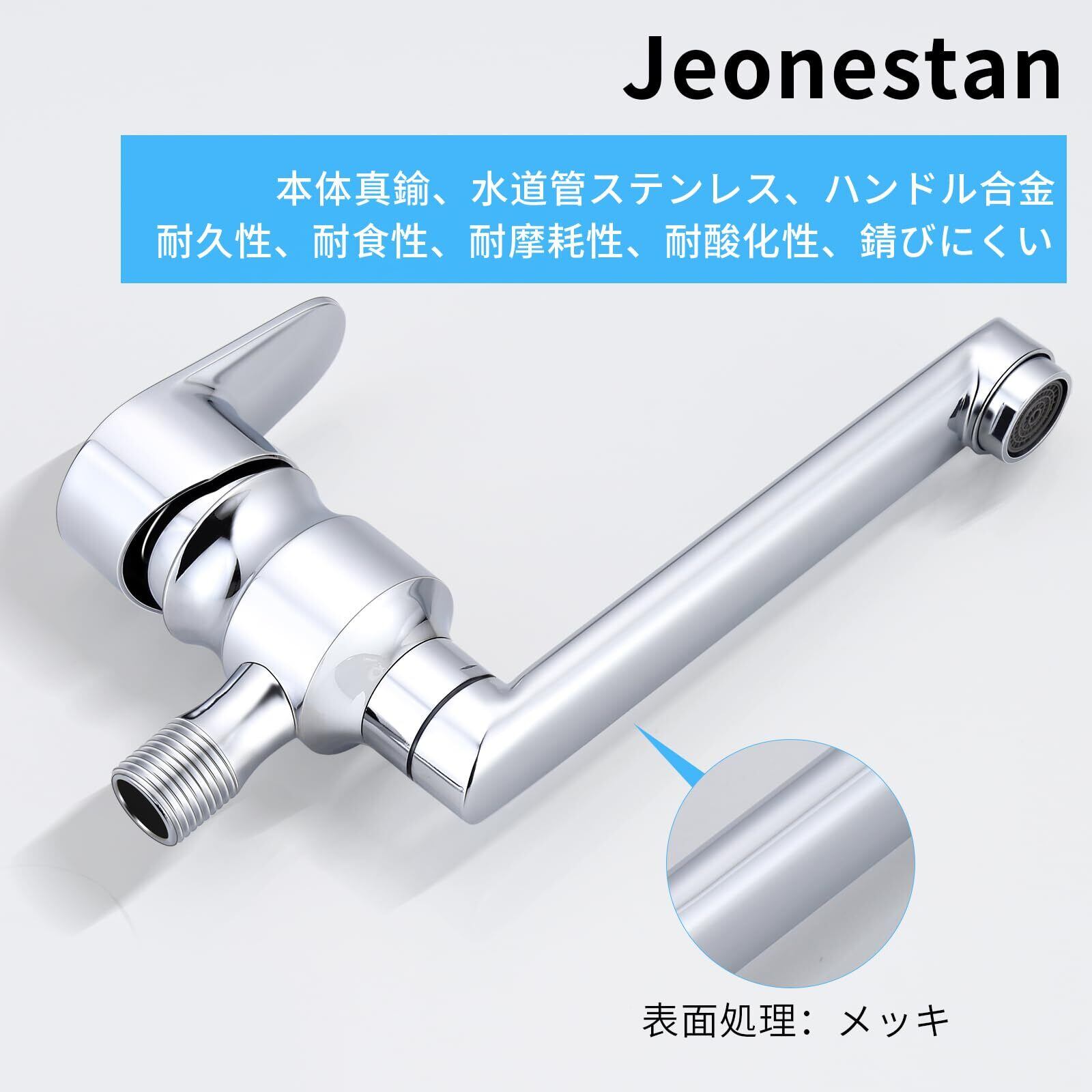 Jeonestan 壁付け 横型自在水栓 台所 1穴 蛇口 単水栓 シングルレバー操作 真鍮製 メッキ加工 防錆仕様 泡水流節水設計 吐水口360度回転 ワンホール取付穴径20mm 手洗いボウル/キッチン対応 (C:長18cm)
