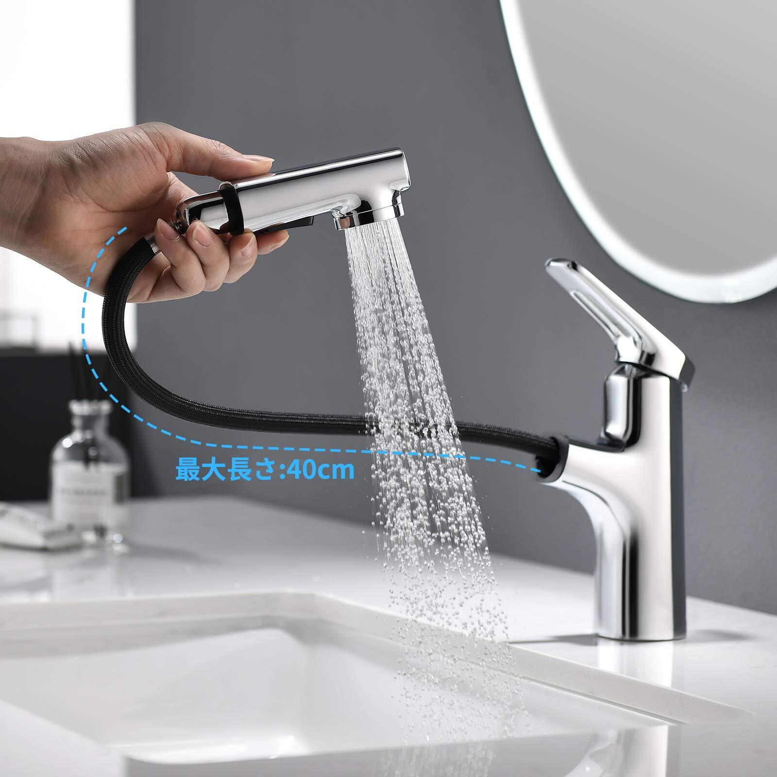 便利的な設計:水栓はホース引き出し式なので、どんな使い方でも便利です。2つ出水方式があって、任意に出水方式を切り替えることができます。