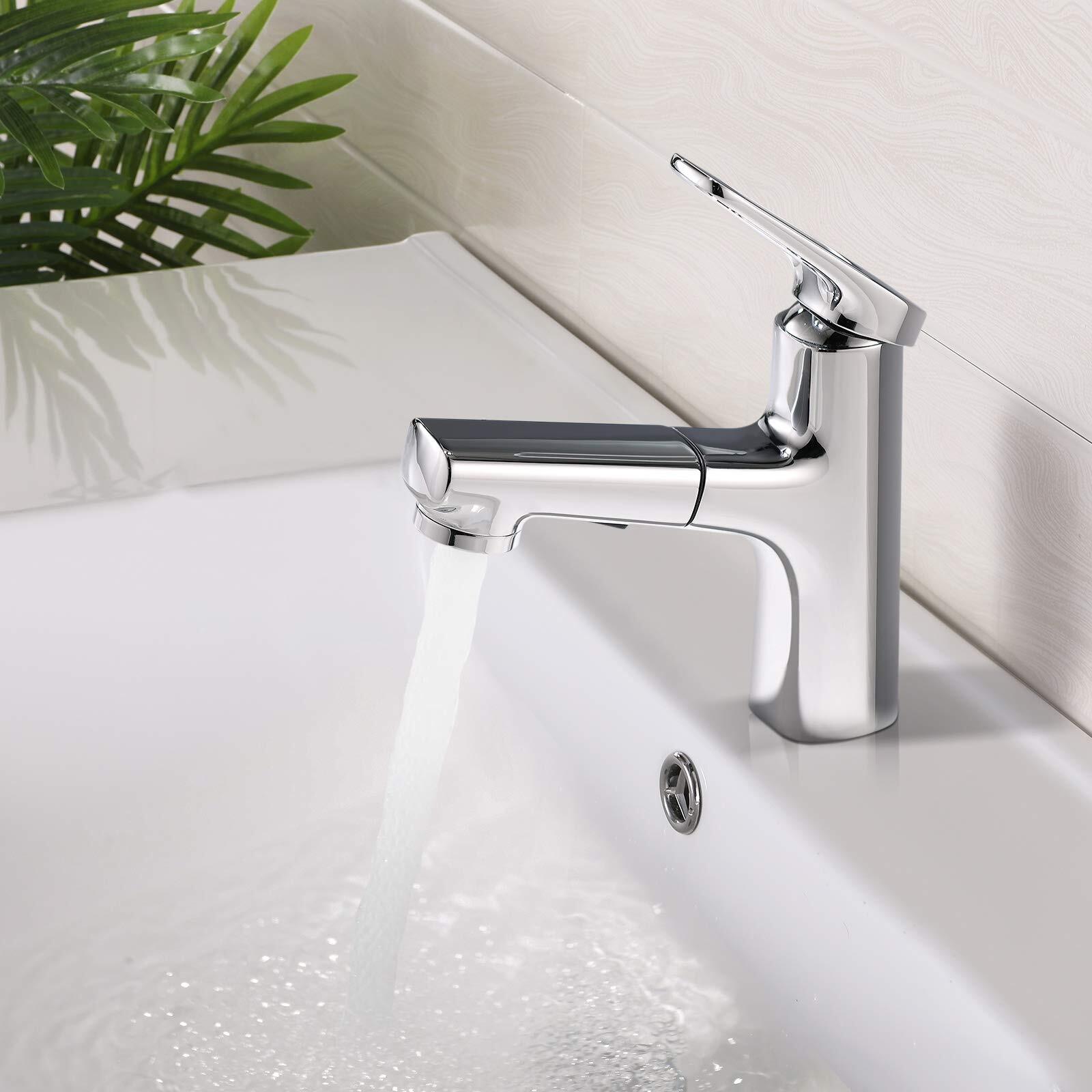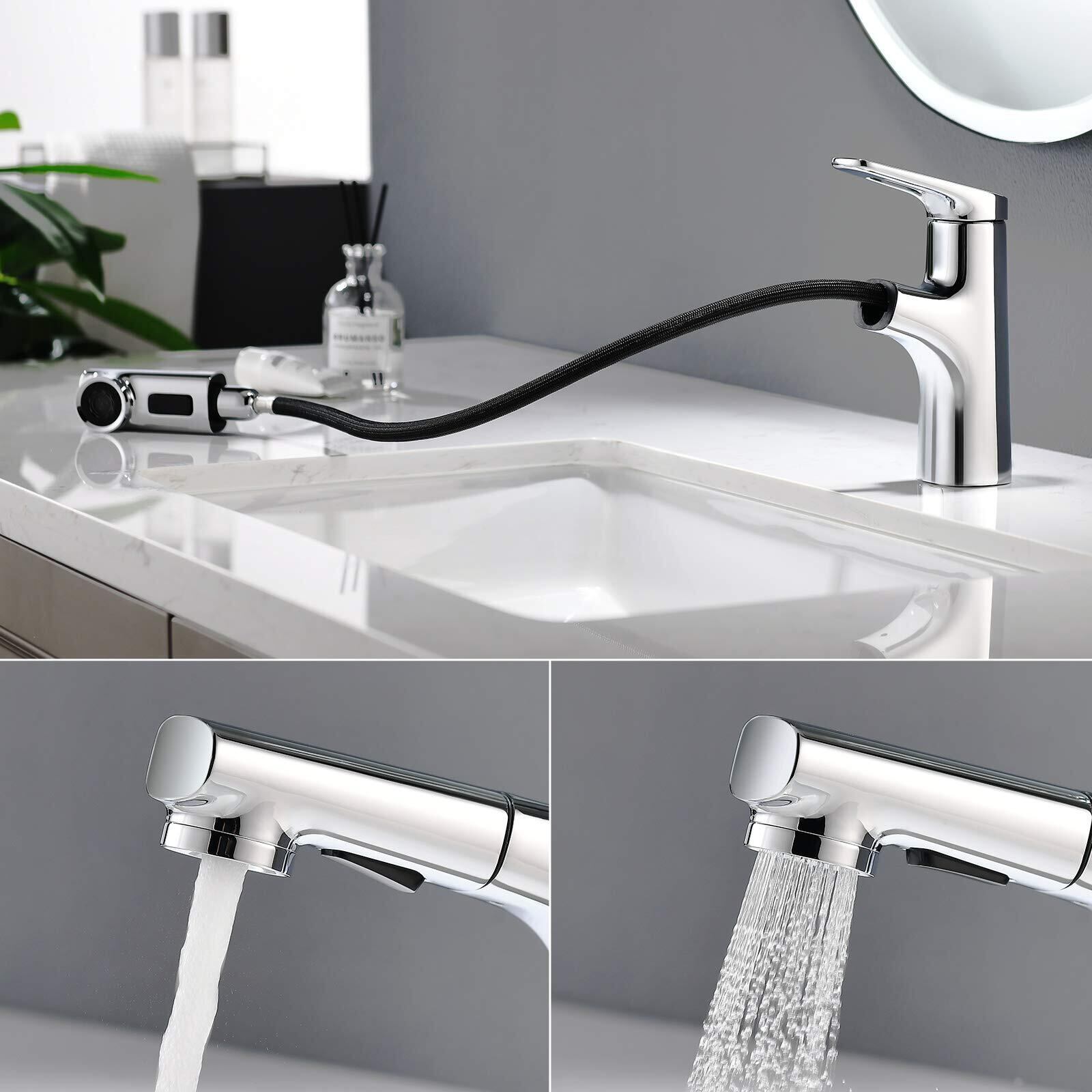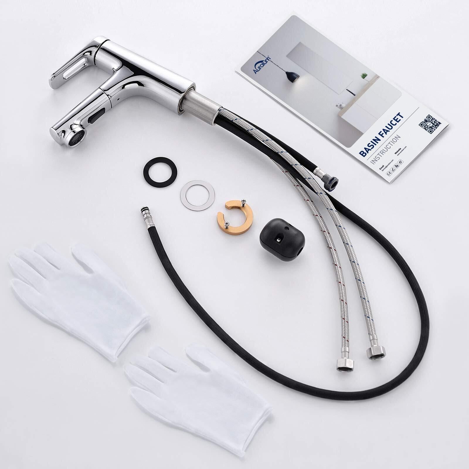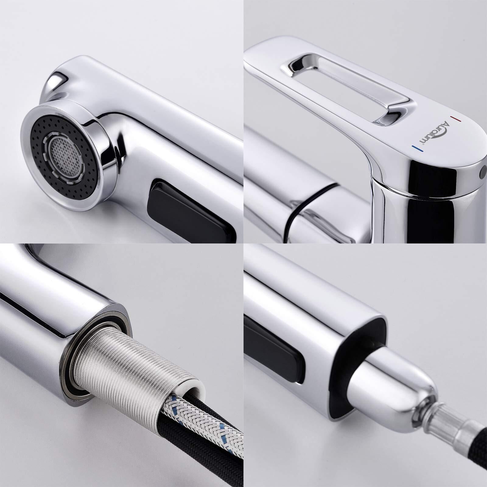 Auralum 洗面 蛇口 混合水栓 台付 1穴 ワンホールホール 引き出し式ホース シングルレバー型 水栓 ソフト泡沫吐水 シャワー モード 洗髪用 取り付け簡単 説明書付き
