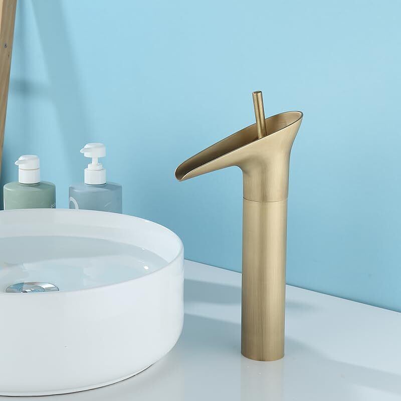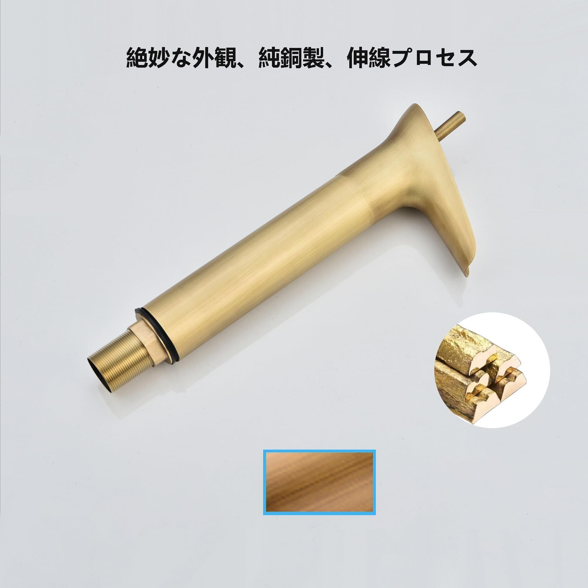 Lychee Light 洗面台 蛇口 浴室用 シングルハンドル ヴィンテージ銅 トイレ用 温度調節洗面台 混合水栓 取り付け簡単 銅色 立水栓 取り付けホース付き 日本語説明書付き(高い)