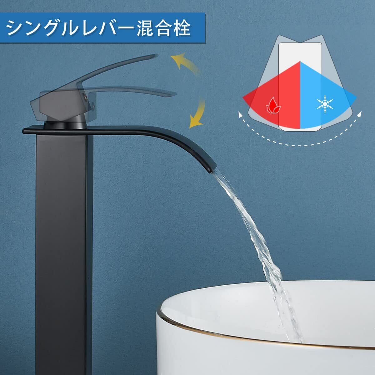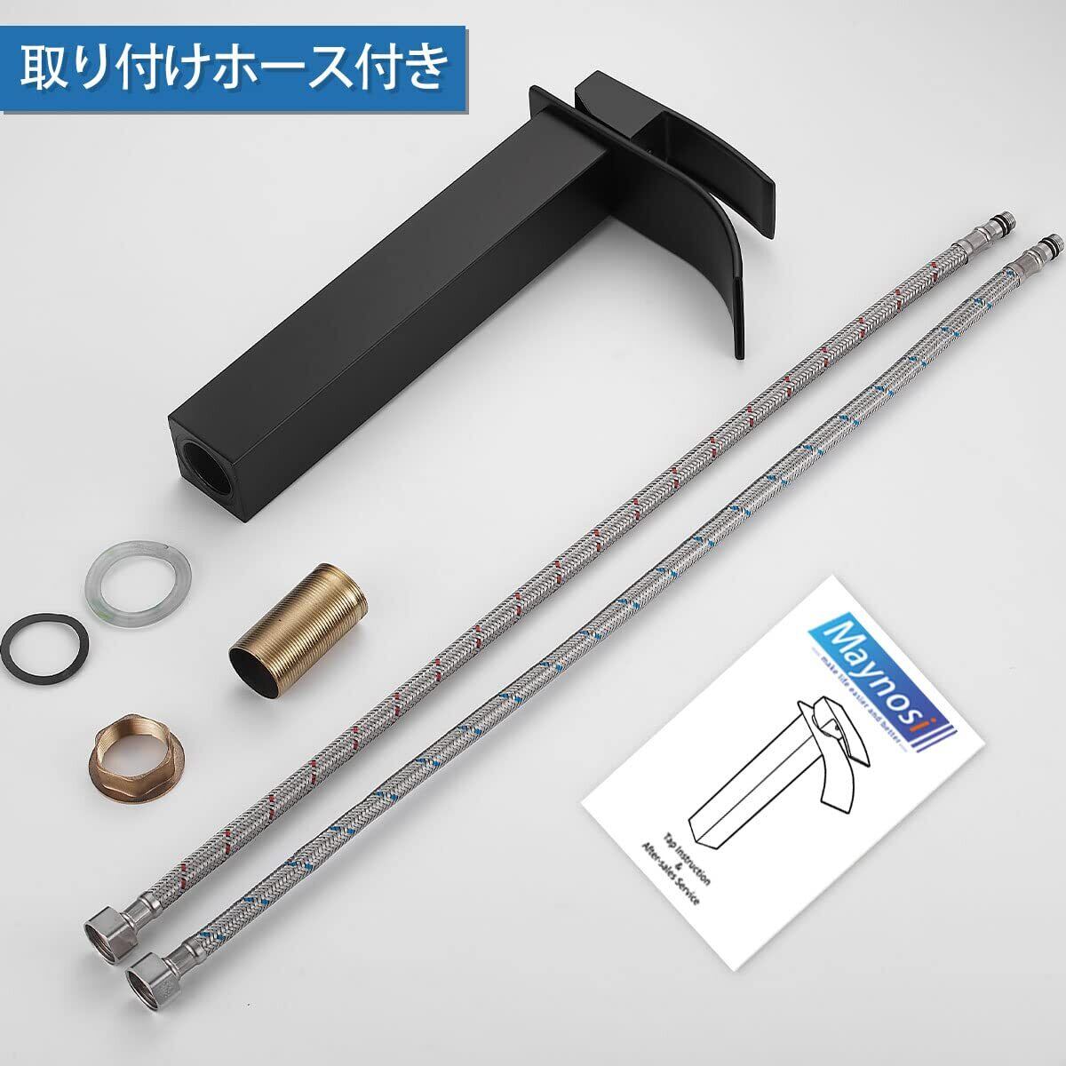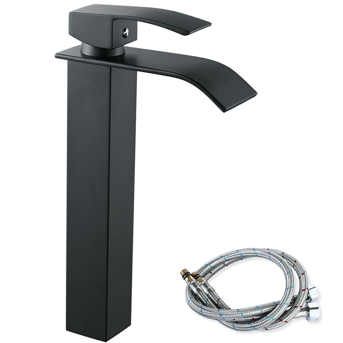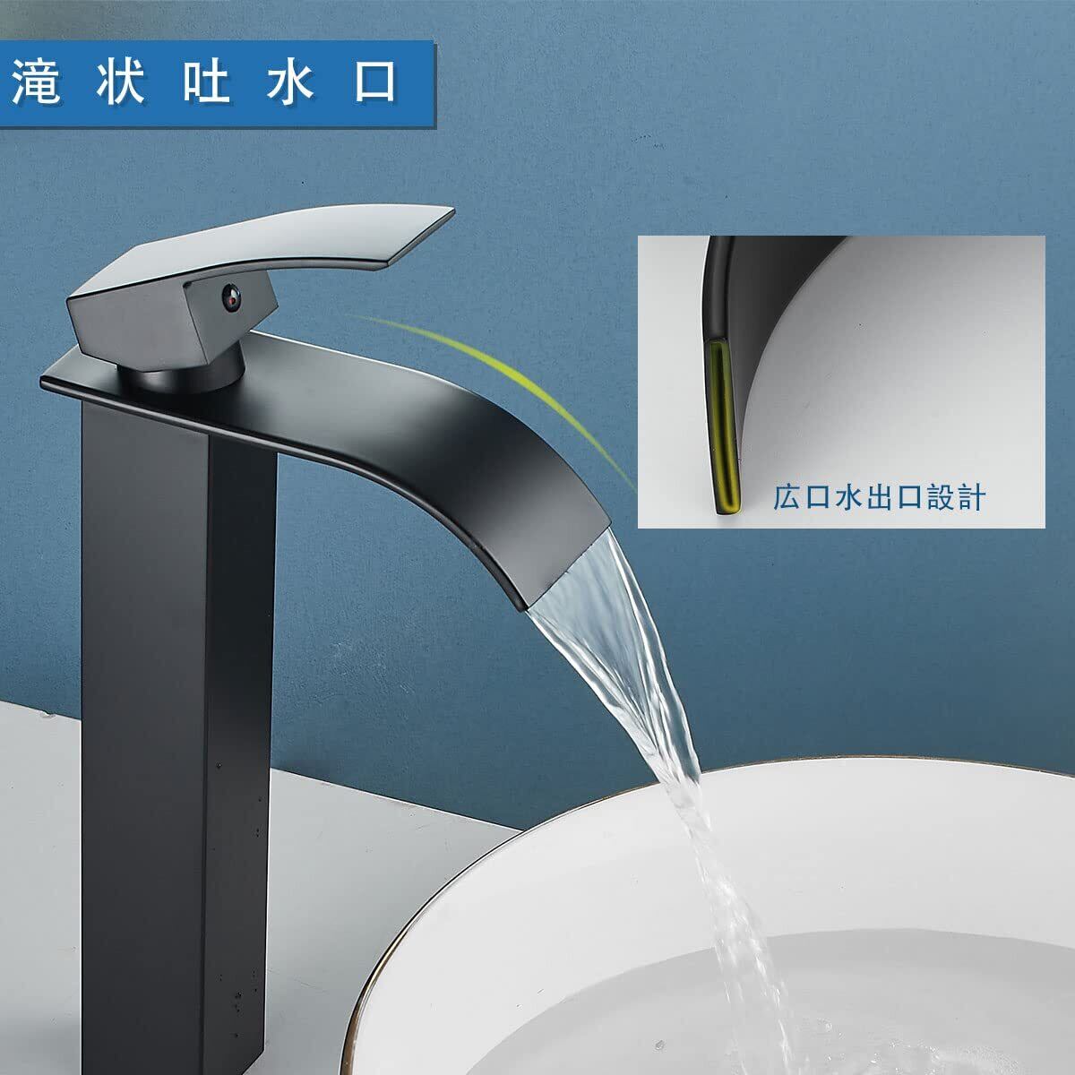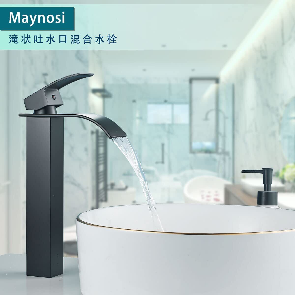 Maynosi 洗面水栓 洗面台蛇口 洗面用混合栓 シングルレバー 混合水栓 立水栓 滝状吐水口 手洗いボウル用 水栓金具 取り付けホース付き 高295mm (黒)