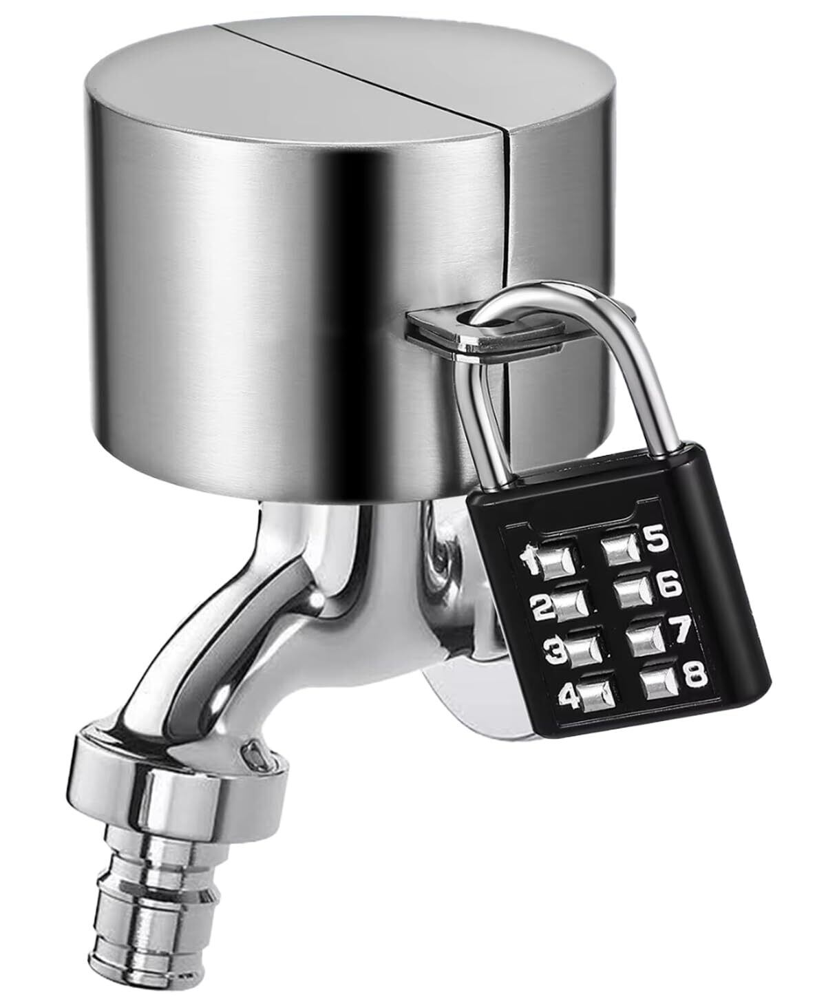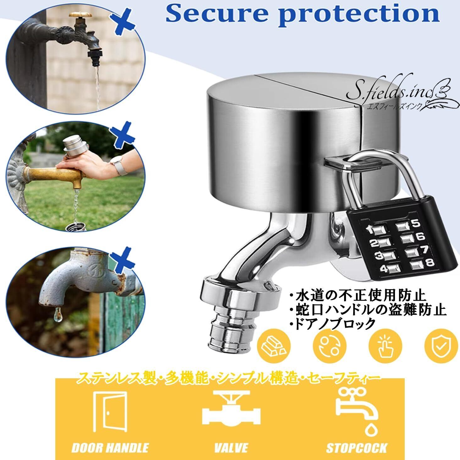 S.fields.inc 蛇口ロック 南京錠付き 鍵 屋外 水道 蛇口ハンドルカバー バルブ ドアノブ ステンレス
