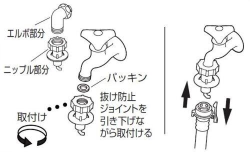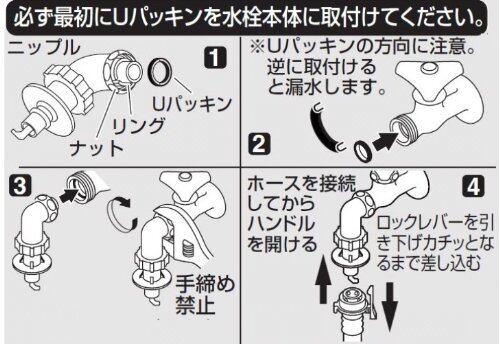 洗濯機ホースを接続するニップルオートストップ機能付で万一ホースが外れた場合、瞬時に給水を自動停止万能ホーム水栓・カップリング横水栓のどちらにも取り付け可能