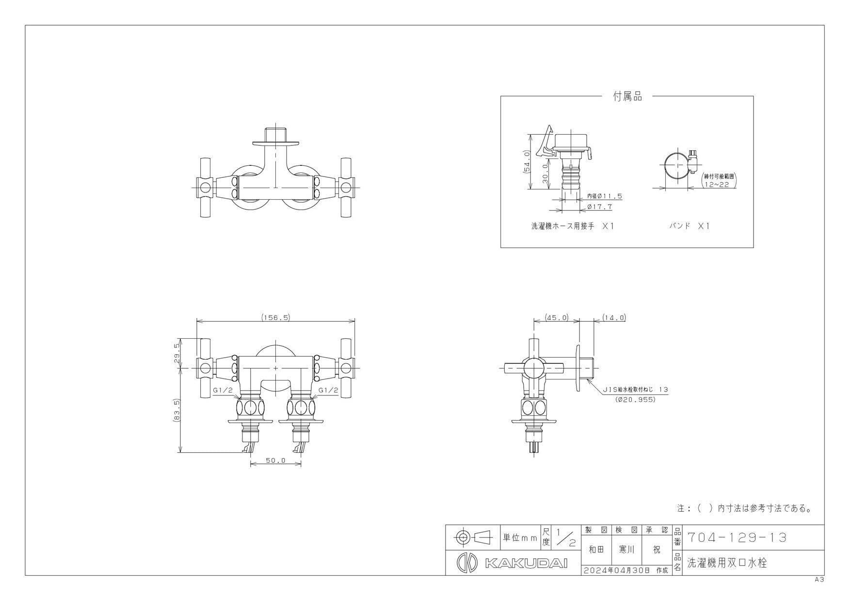 カクダイ 【704-129-13】 洗濯機用双口水栓 洗濯機単水栓