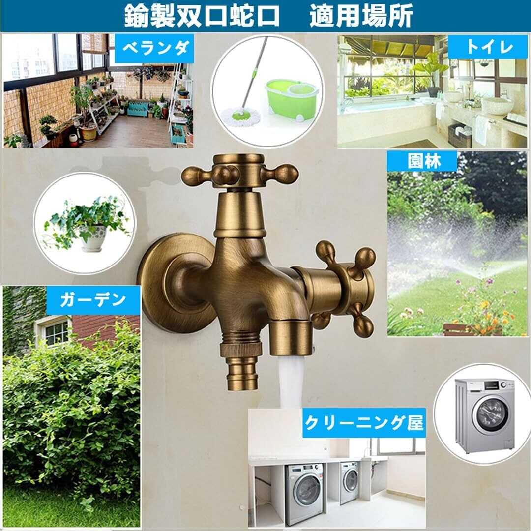 洗濯機用水栓 双口 水栓 2口 蛇口 屋外用蛇口 北欧風 真鍮製 2口 タイプ 洗濯機用 横水栓