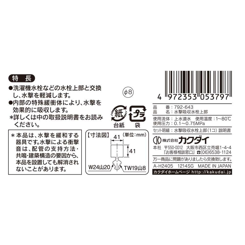 カクダイ 洗濯機用 単水栓 水撃吸収水栓上部 ハンドル取り替え 止水時の不快な音を吸収・軽減 呼13水栓用 792-643