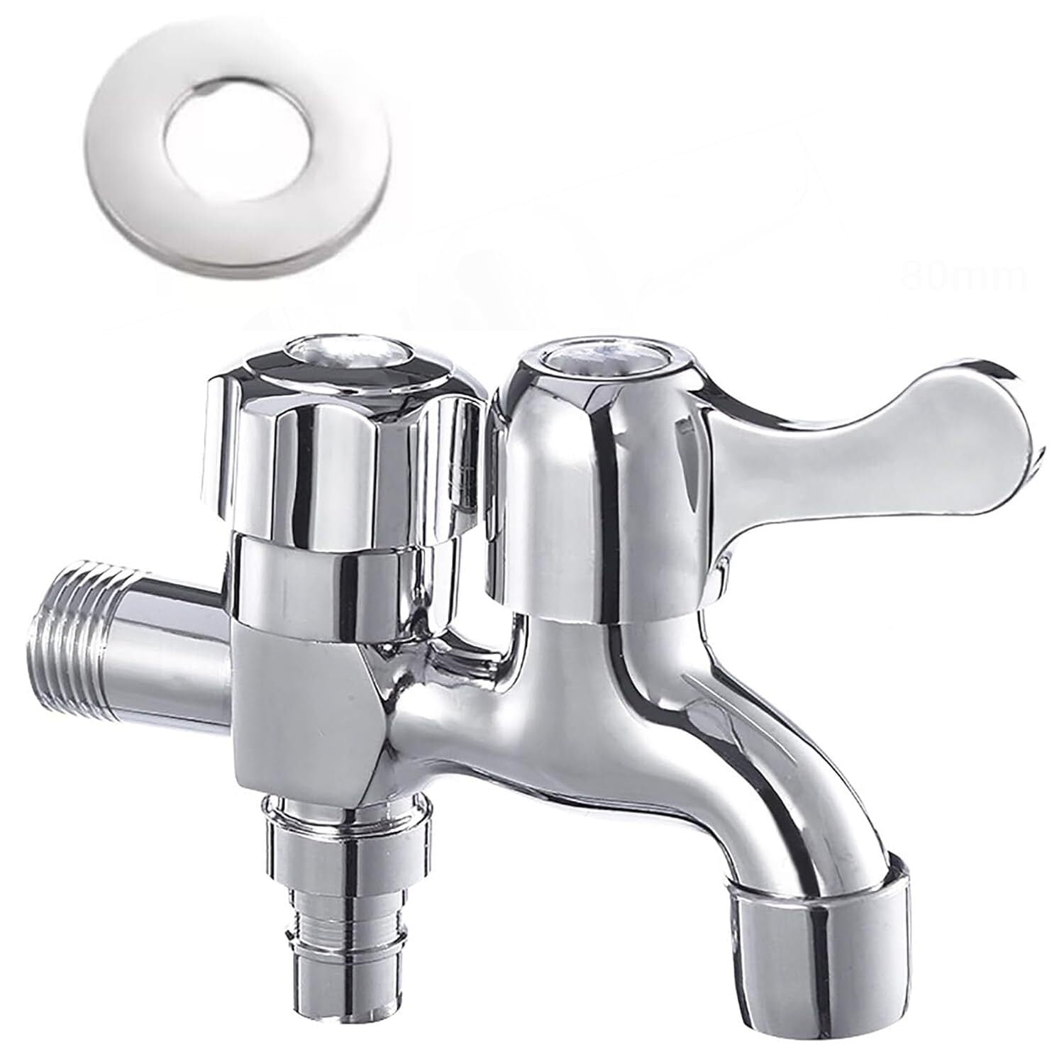 双口水栓 二股蛇口 真鍮電気蛇口 双口 二口横水栓 ワンタッチ 洗濯機 ホース 水道 分岐 屋外 取り付け簡単 切り替え 継手 修理 パーツ カスタム DIY