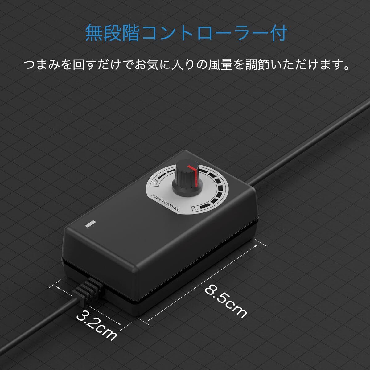 【コントローラー付き、一番いい換気スピードを選ぶ】無段階コントローラーが付いています。つまみを回すだけで、風量や風圧を同時に、最小から最大まで自由に調節頂けます。ご使用のシーンによって一番いい風量を調節して、換気スピードやノイズを選んで頂けます。