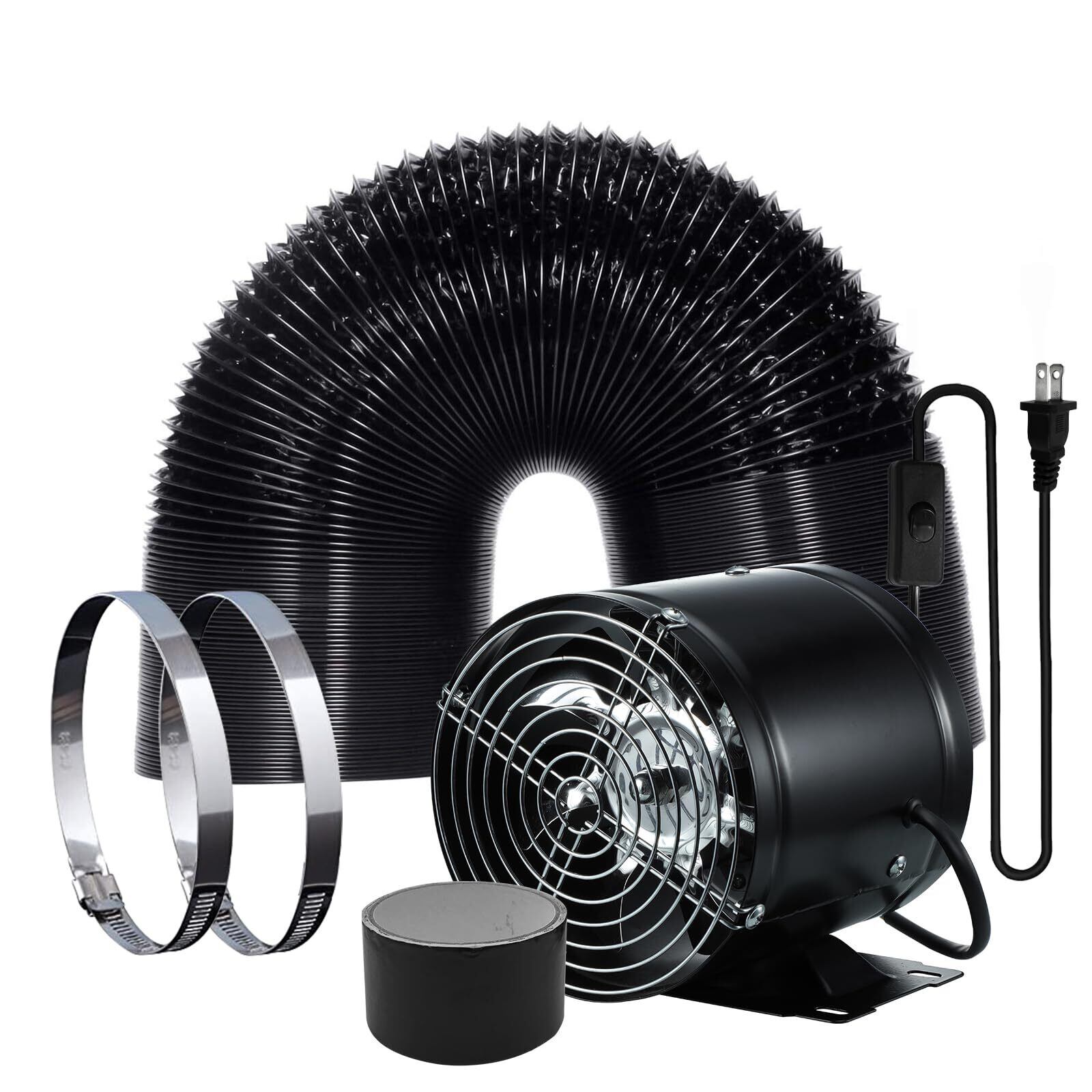 【2025年最新型】換気扇 150mm 大風量 Sidvkut 家庭用工業換気扇 風量480m³/h 金属製 ON/OFFスイッチ付き 中間取付形ダクトファン 塗装ブース用 ダクト用換気扇 ダクトホース付き 倉庫/トイレ/キッチン換気排気用 (ブラック) | KSショップ