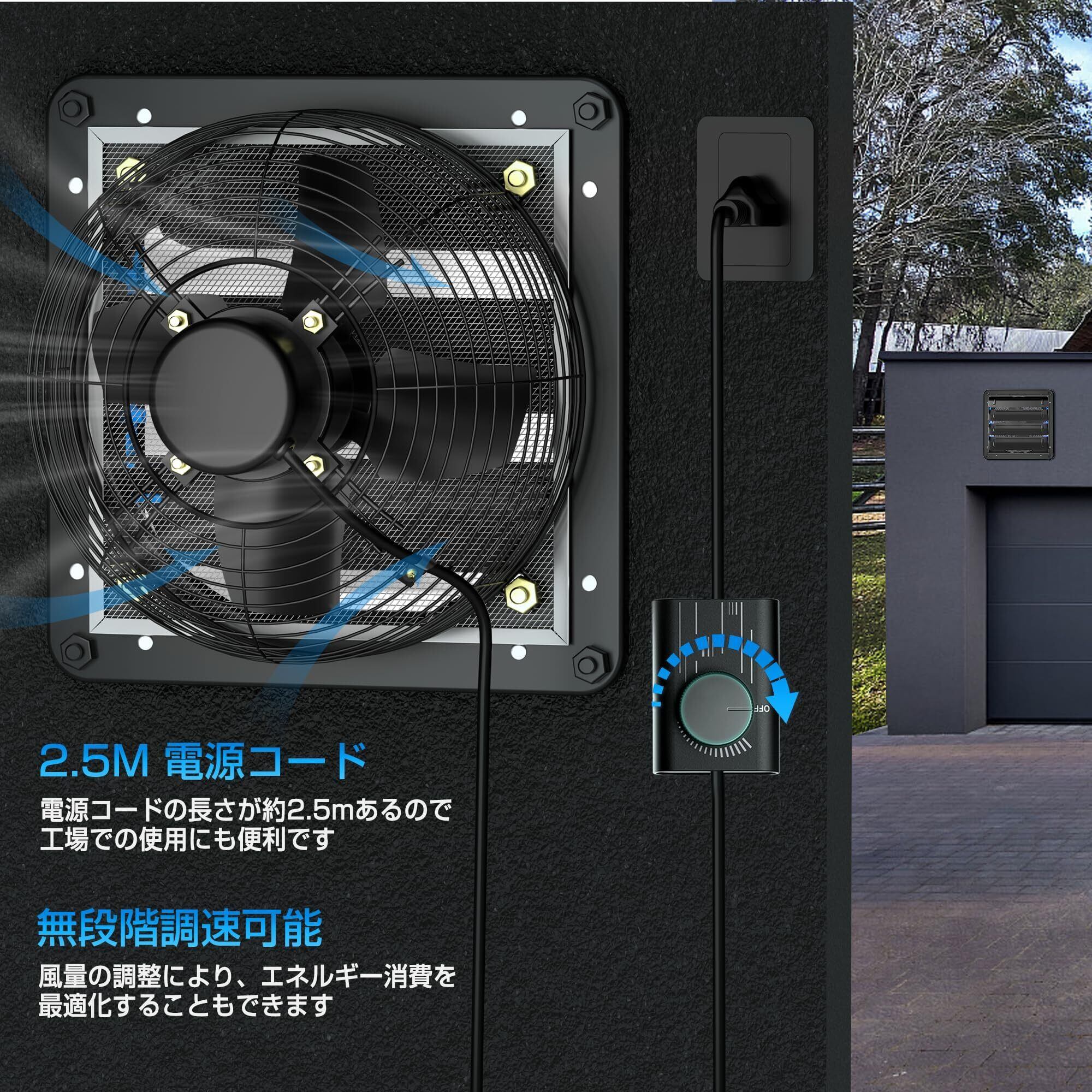 Hon&Guan 換気扇 300mm 有圧換気扇 無段階スピード【インボイス制度登録店】コントローラー付き シャッター付き 産業用有圧換気扇 低騒音 排気専用 単相100V 工場・作業所・倉庫用 (羽根径30cm,無段階スピード) | KSショップ