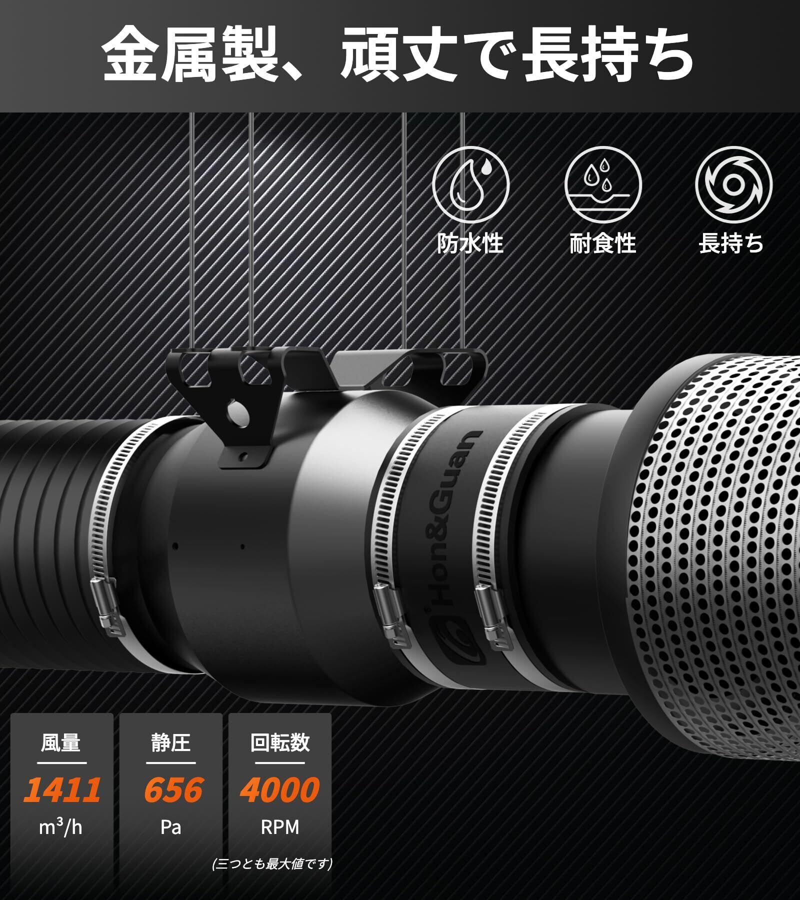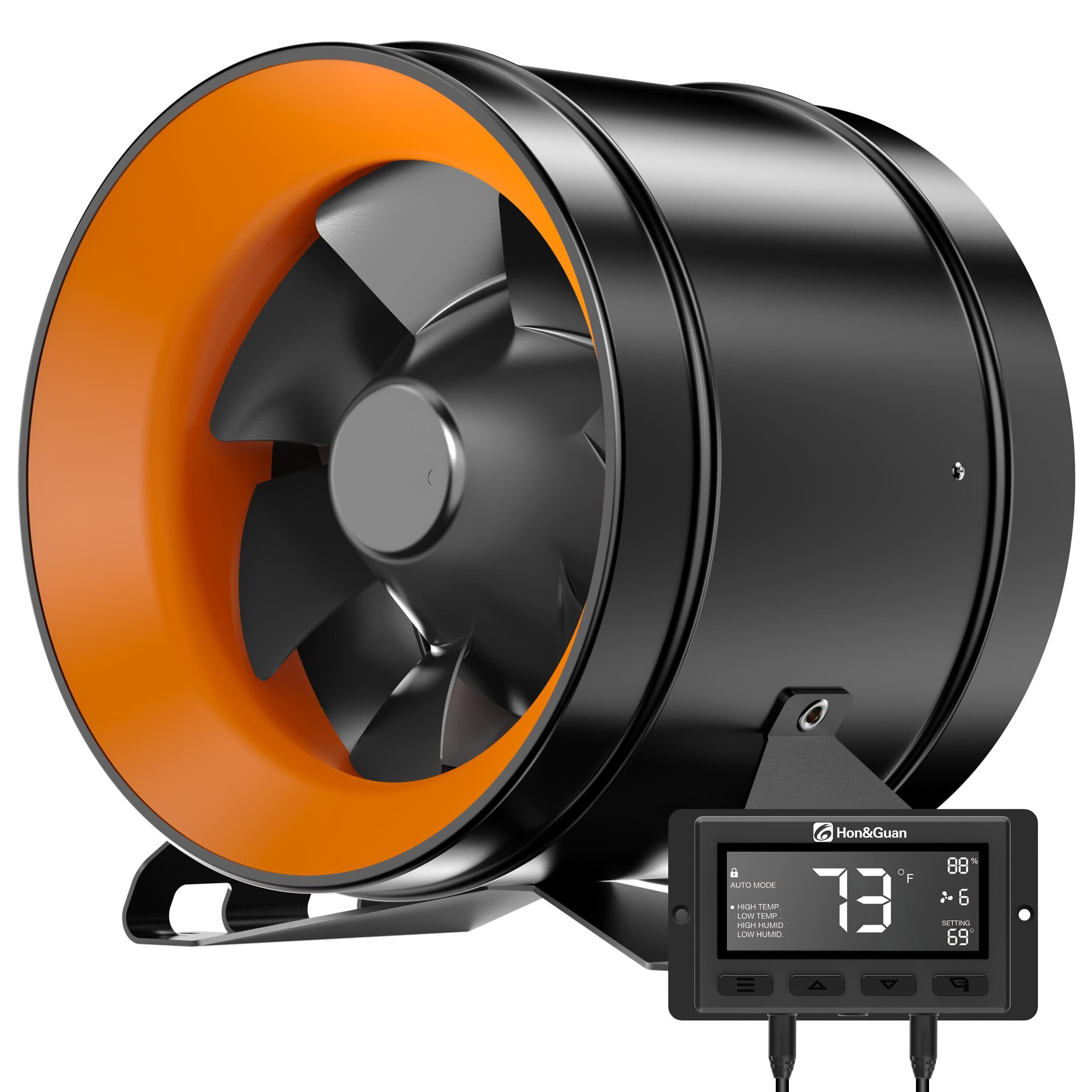 Hon&Guan ダクトファン 200mm 強力 1411m³/h【インボイス制度登録店】中間取付型 金属型 ダクト用 換気扇 スマートコントローラー付き 温度湿度にて自動オンオフ 省エネ 静音 塗装ブース用 家焼肉 丸形タイプ 産業用換気扇 取扱説明書付(HI-200PED,ブラック)